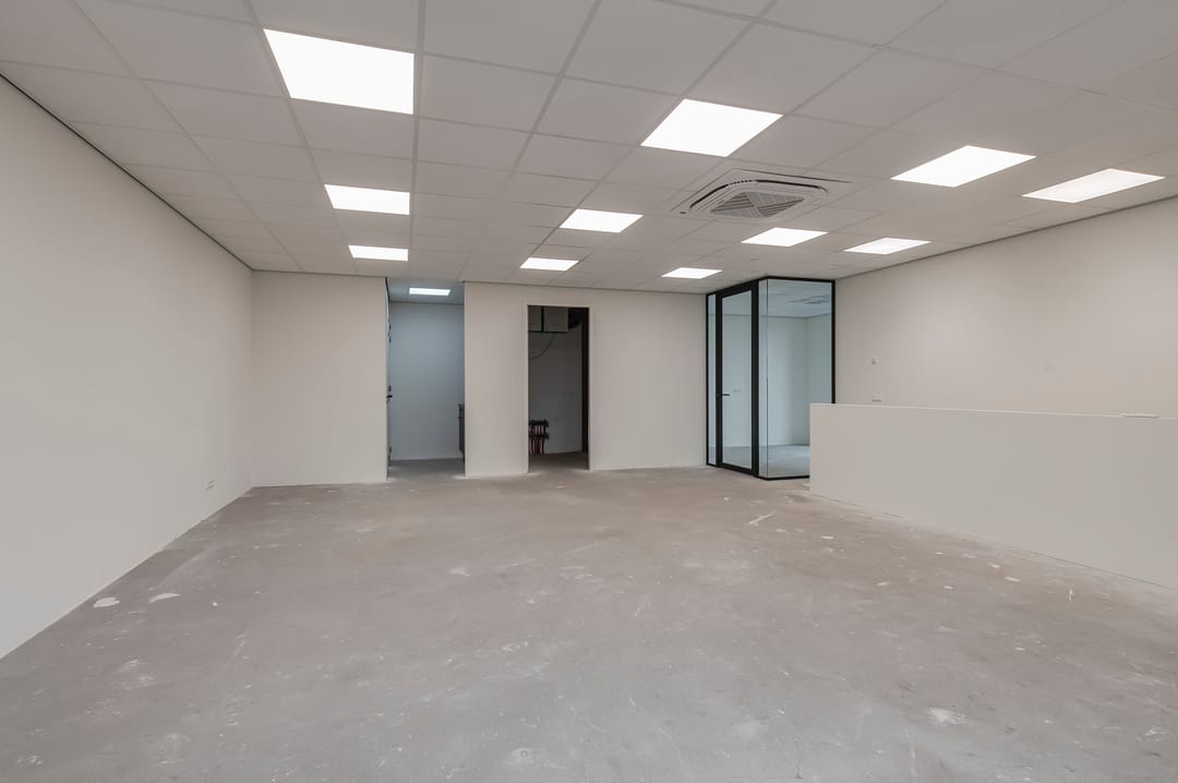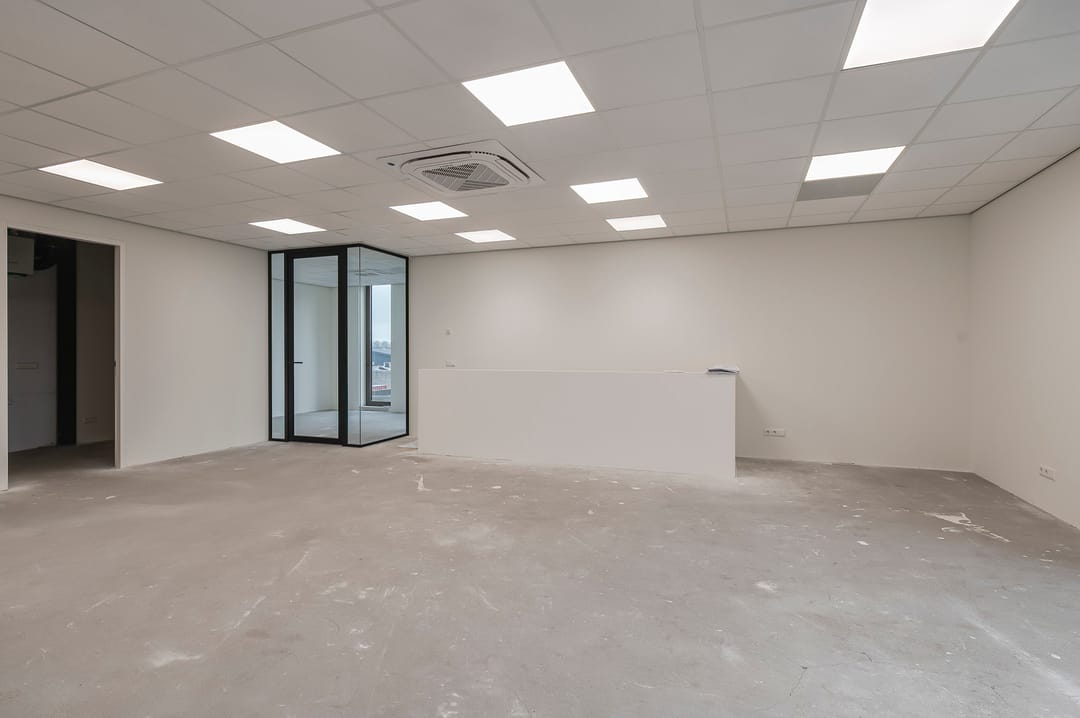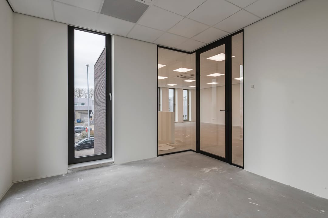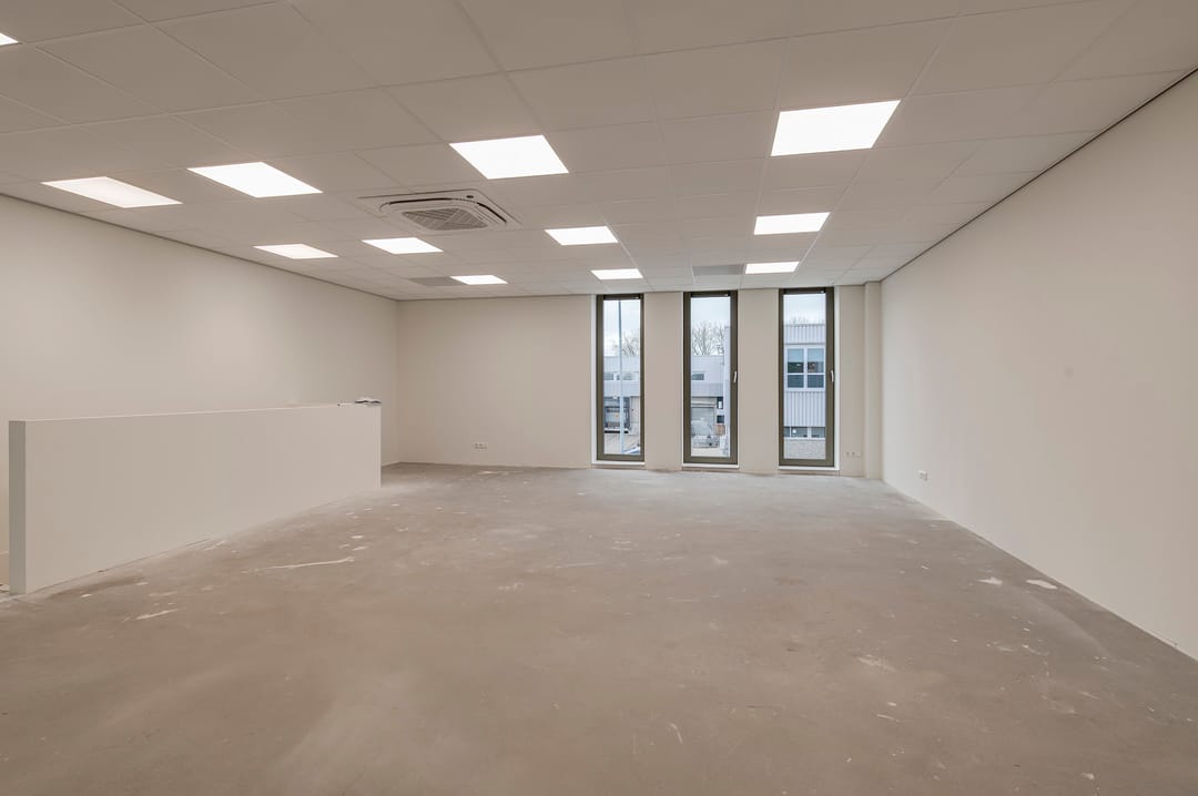 De kantoorruimte op de verdieping heeft een oppervlakte van ca. 92 m² b.v.o. (ca. 86 m² v.v.o.) en bestaat aan de voorzijde uit een open ruimte. Achterin ter hoogte van de trapopgang is een afgescheiden kantoor-/vergaderkamer gemaakt. Deze ruimte beschikt over meerdere ramen, waardoor er ruim voldoende daglicht binnenkomt. Naast deze technische ruimte zijn een dubbele toiletgroep en een pantry gesitueerd.