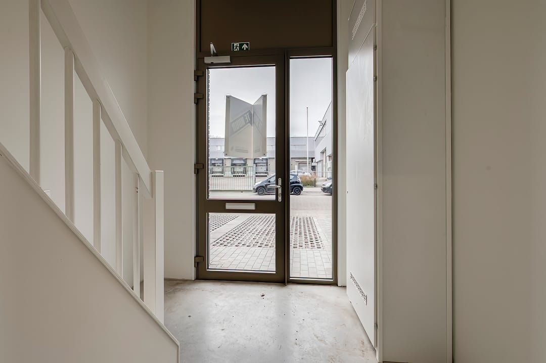 Entree via aparte loopdeur naar een entree/hal voorzien van meterkast en systeemplafond met led verlichting, trapopgang naar de verdieping, via een interne toegangsdeur is de bedrijfsruimte toegankelijk. Dit betreft een open ruimte voorzien van een toilet en een uitstortgootsteen. De elektrisch bedienbare overheaddeur heeft een afmeting van 3,5 m. x 3,5 m.