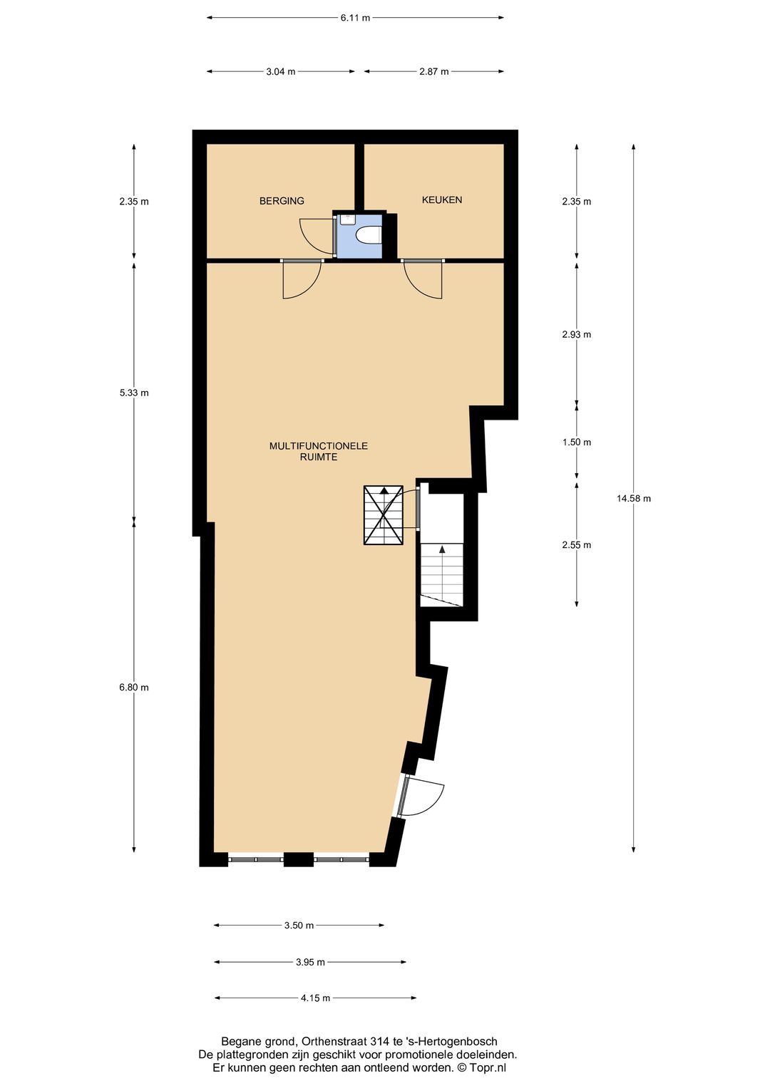 De te huur aangeboden commerciële ruimte met kantoor-/opslagruimte is gelegen in het hart van de Bourgondische binnenstad van 's-Hertogenbosch, op de hoek van de Orthenstraat en Gruyterpassage. Dit is om de hoek van de drukke Visstraat en in het verlengde van de Hoge Steenweg, welke de belangrijkste invalsweg vanaf het NS Centraal Station naar het stadscentrum van ’s-Hertogenbosch vormen. De Orthenstraat zelf is een echte ‘doe’ straat waarin een mooie mix van speciaalzaken, baliekantoren en horeca zijn geconcentreerd.