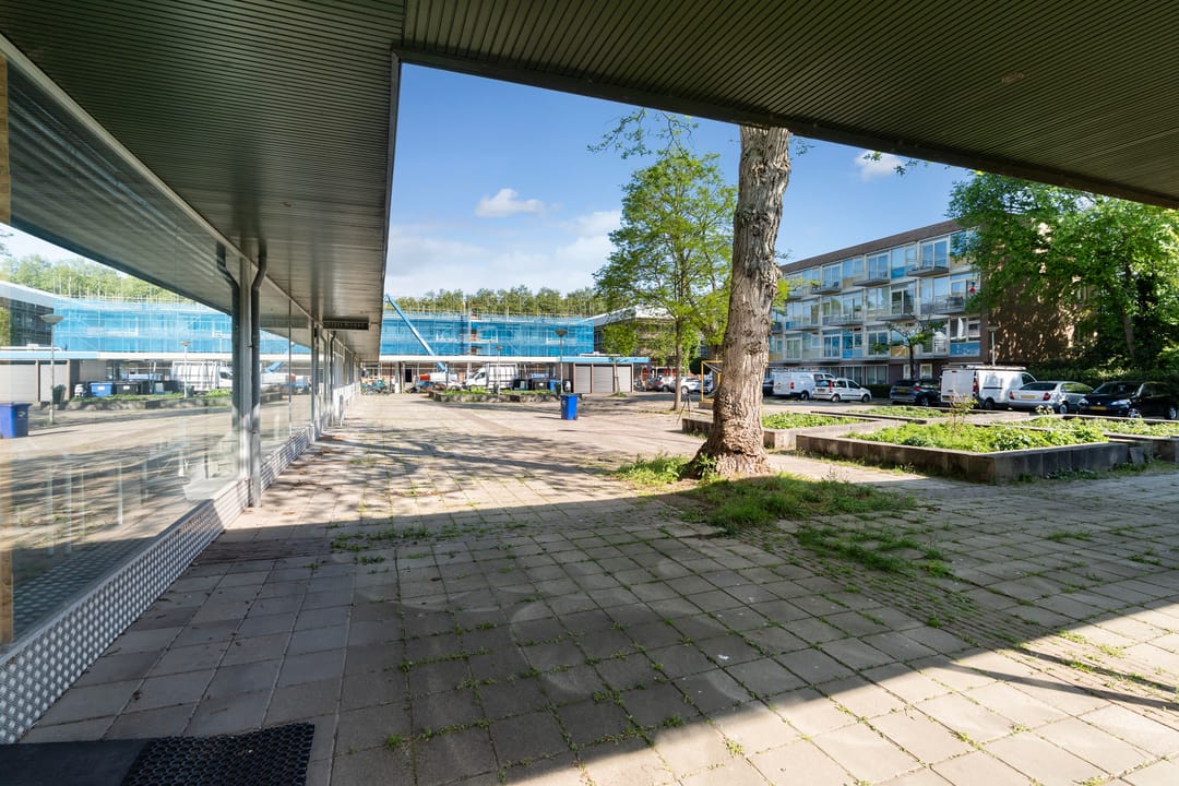 Winkel/bedrijfsruimte (sportfunctie) op de begane grond met een een flinke kelder gelegen in de plint van een appartementengebouw in Mariahoeve.