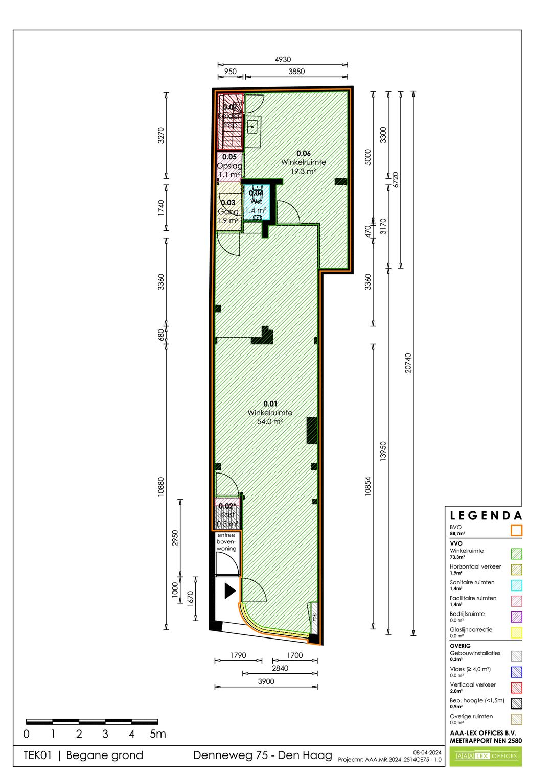 het verhuurbaar vloeroppervlak omvat 78,00 m² VVO verdeeld over begane grond.