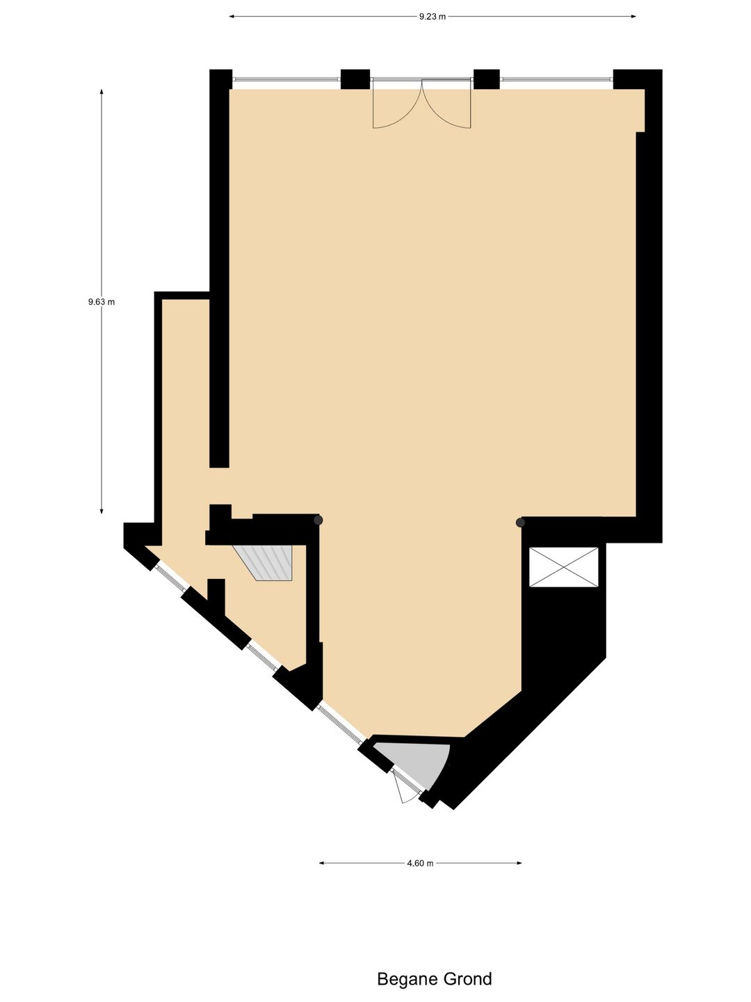 - Begane grond: circa 116 m² v.v.o.;