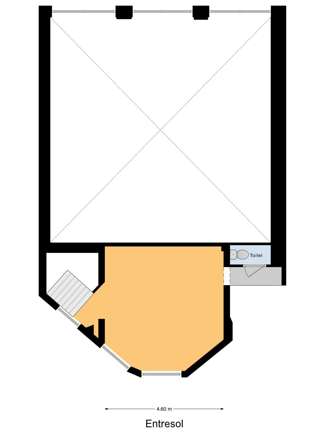 Het object wordt leeg en bezemschoon opgeleverd en is voorzien van toilet op de entresol. Doch het object wordt uitsluitend casco verhuurd.