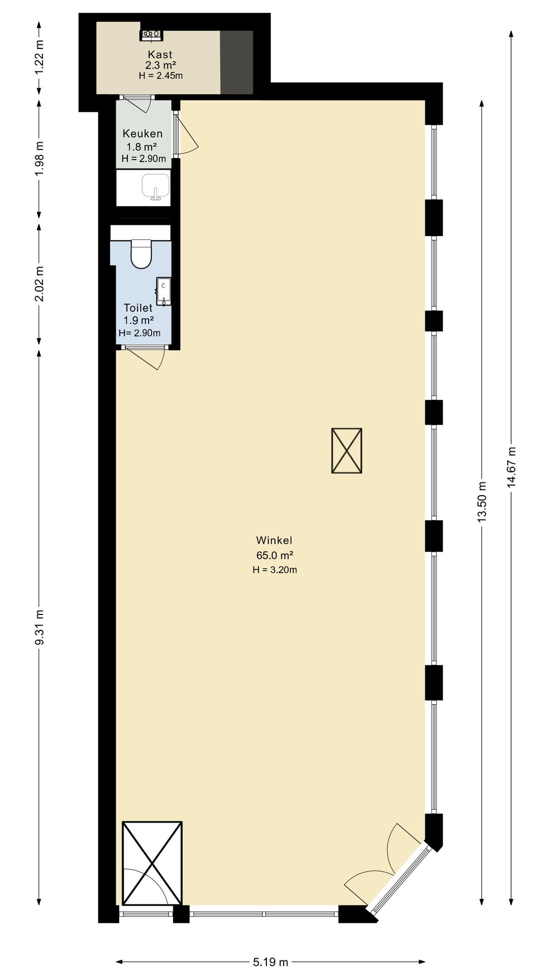 verhuurbaar Vloer Oppervlak omvat totaal 71,00 m² en is volledig op de begane grond gelegen.