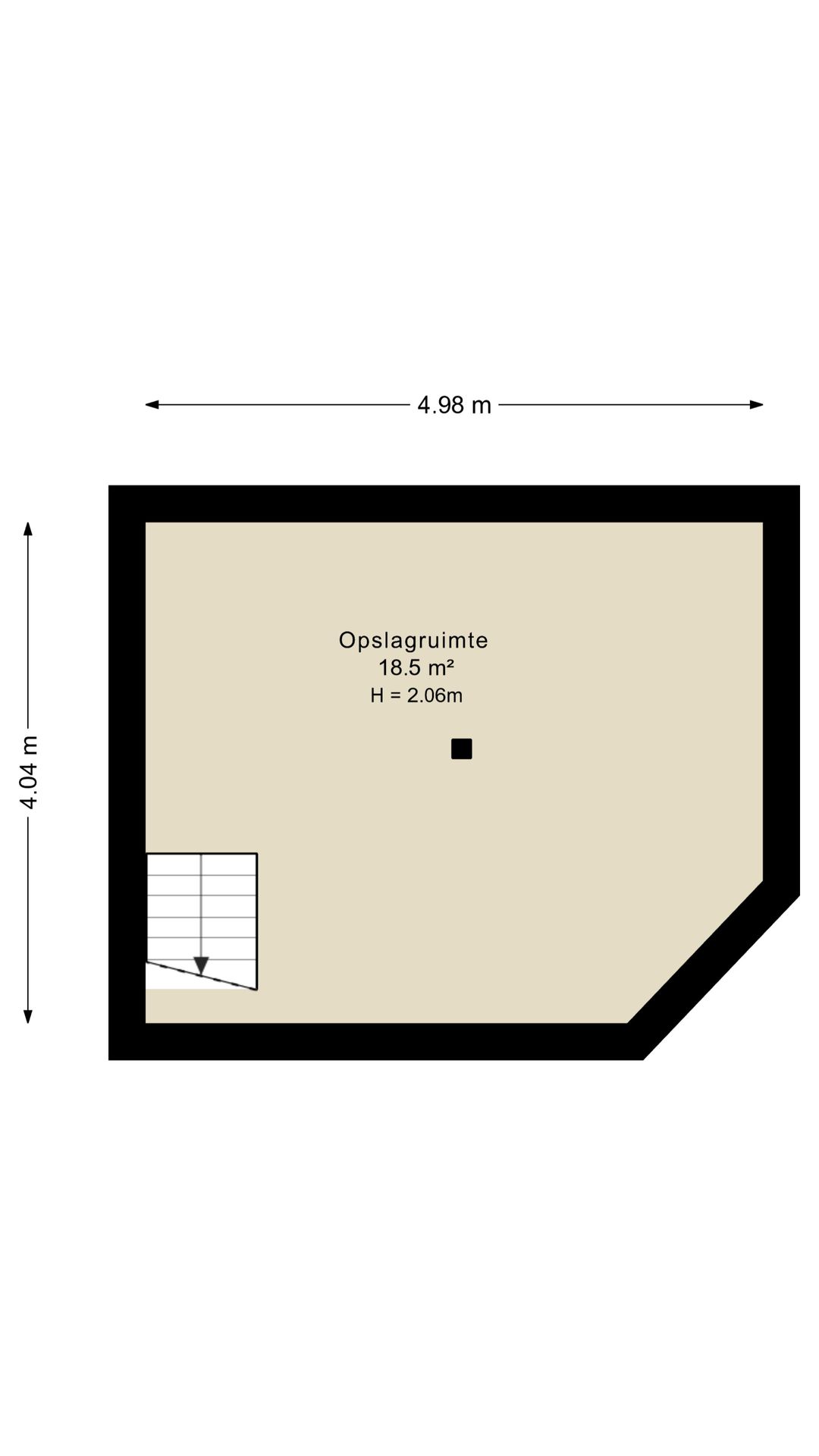 het object beschikt ook over een kleine kelder (18,50 m2), die via een luik bereikbaar is. Deze kelder behoort niet tot het gehuurde, doch mag door huurder gedurende de duur van de huurovereenkomst ‘om niet’ door huurder voor eigen risico worden gebruikt.