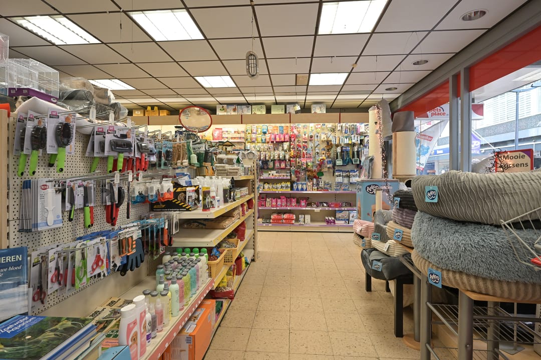 De winkelruimte heeft een breed front van circa 12 meter, wat zorgt voor optimale zichtbaarheid vanaf de straat. De entree bevindt zich centraal in de winkelruimte. Momenteel is de winkel ingericht als dierenspeciaalzaak, in overleg kunnen er diverse zaken om niet achterblijven in het gehuurde. Achter is een kleine pantry en toilet gelegen en een achteruitgang om te laden en lossen.