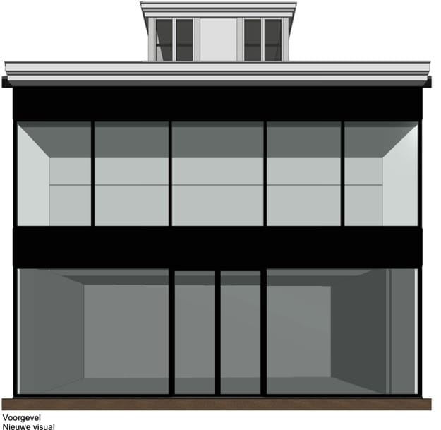 In overleg en mits vergund zal de verhuurder een nieuwe pui plaatsen (zie artist impression).