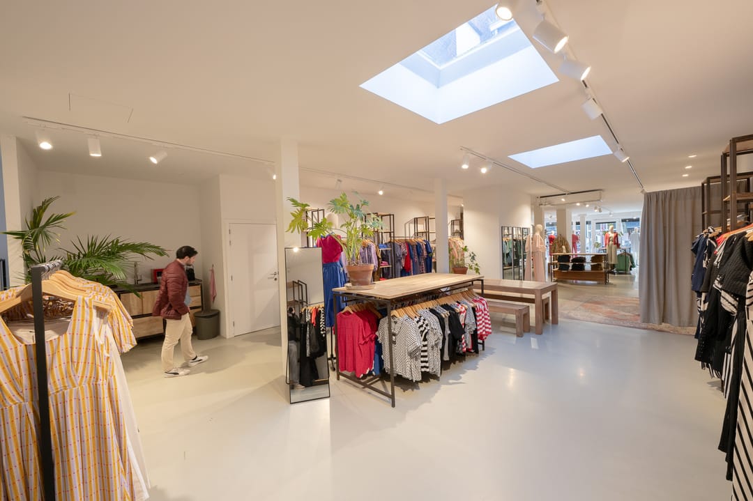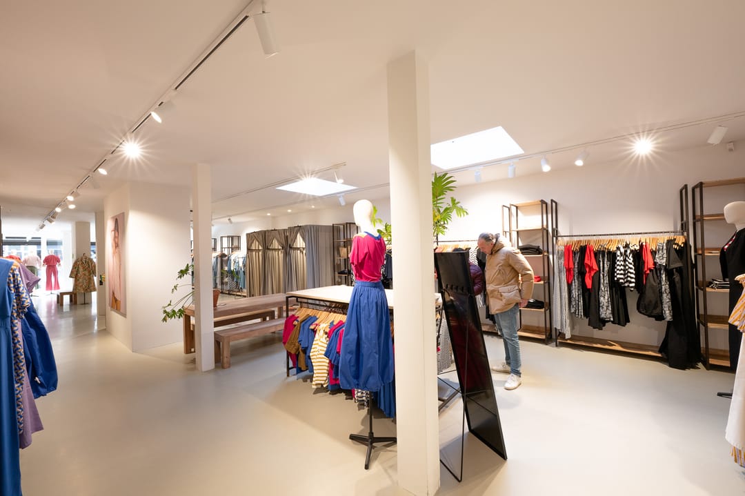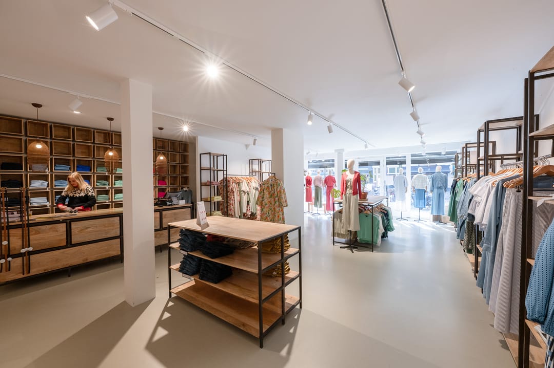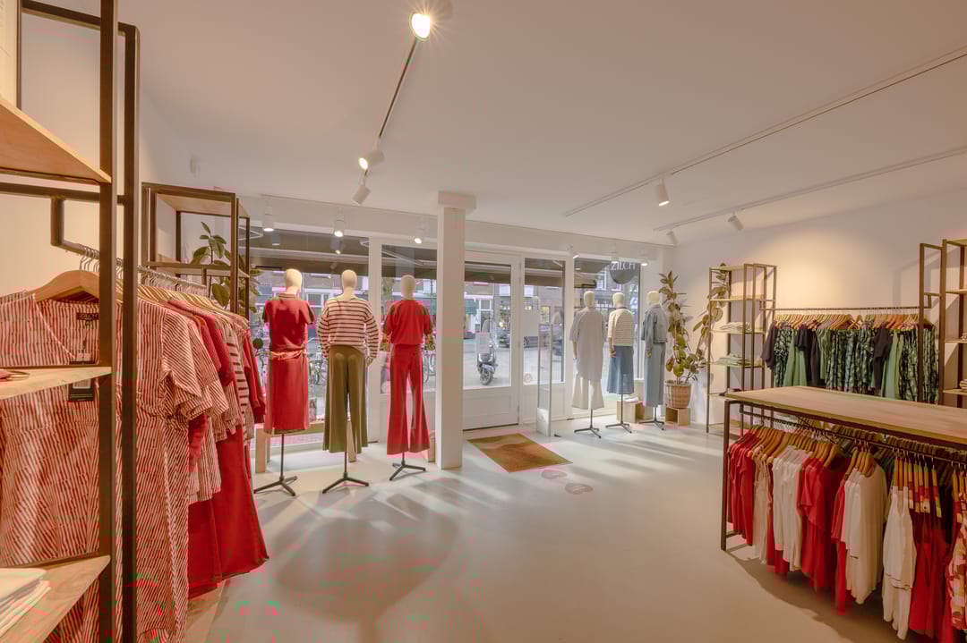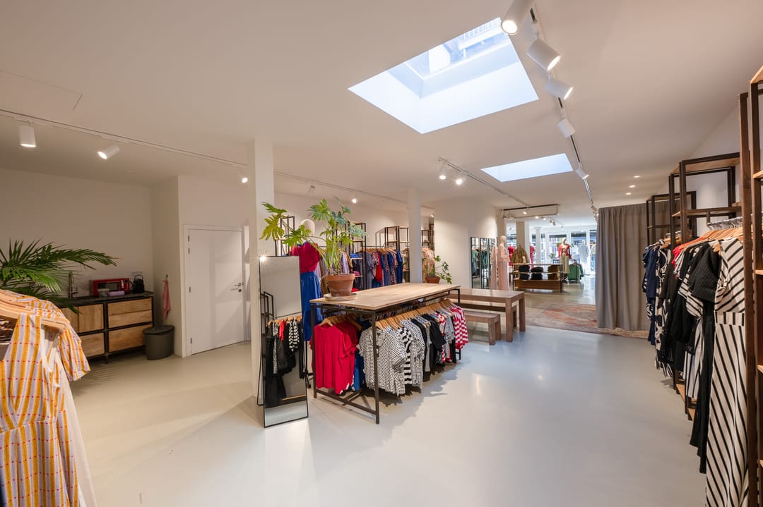 De winkelruimte ligt tussen Stomerij Veldkamp en Odido.