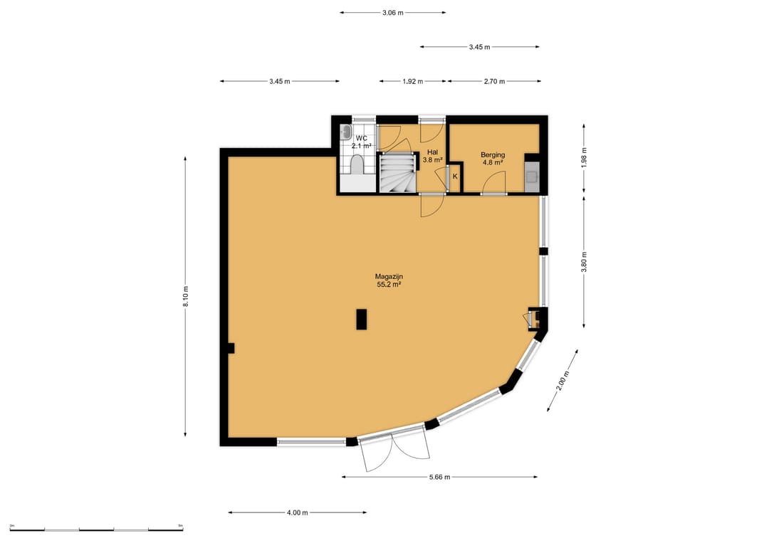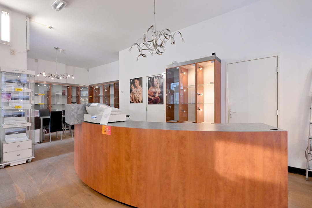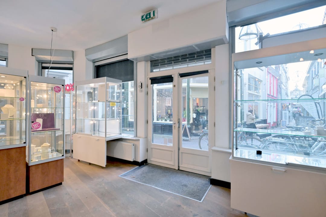 De winkelruimte heeft een totale oppervlakte van ca. 66 m² en beschikt over een achteringang, pantry, toilet en royale kelder van ca. 32 m² (stahoogte).
