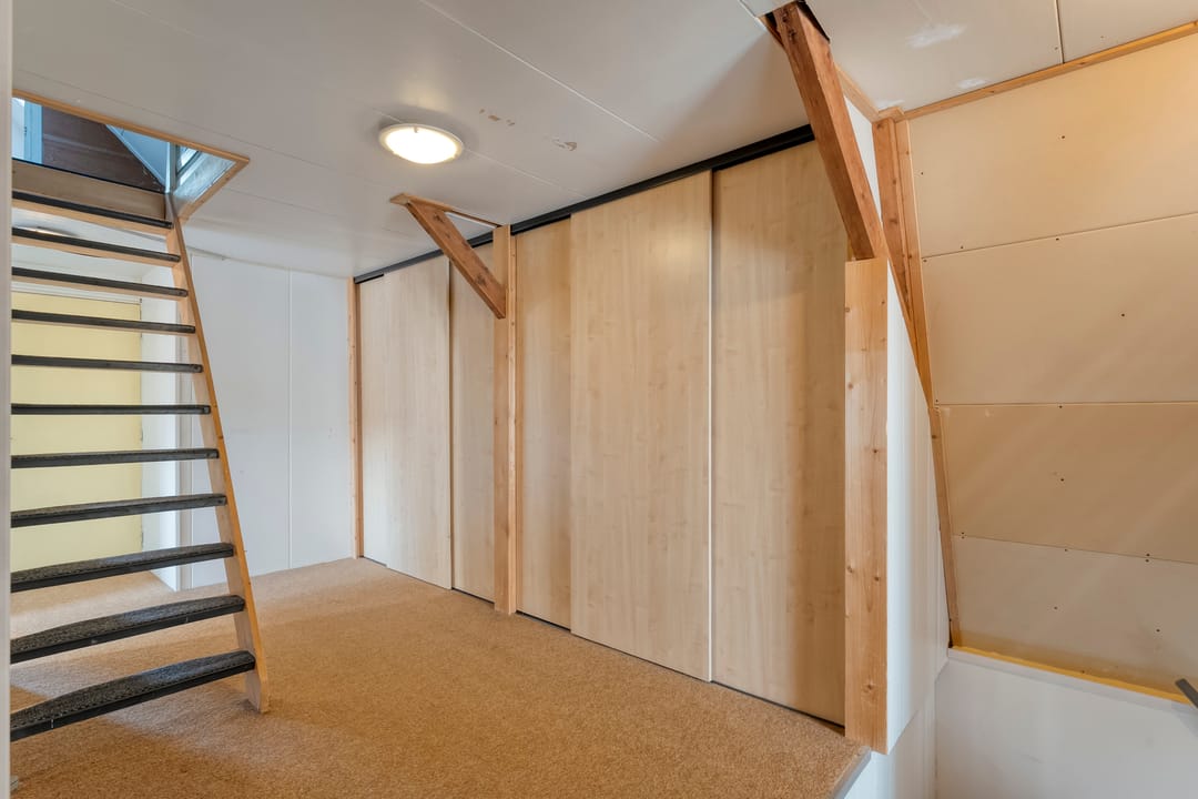 Tweede verdieping: overloop, slaapkamer en een berging. Tweede verdieping achterhuis: bergzolder.