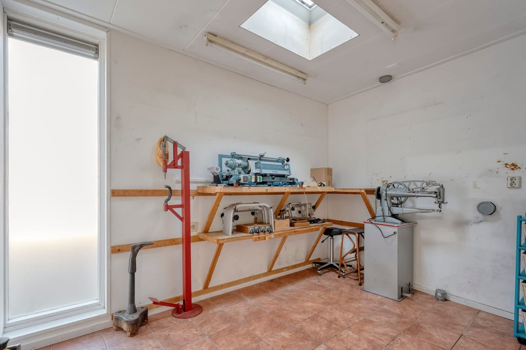 Begane grond: Winkel/Praktijk: entree, winkel-/praktijk, berging-magazijn, werkplaats, kantoor en toiletruimte.