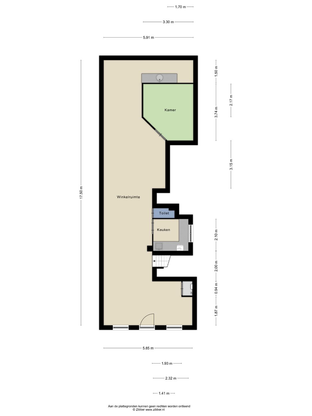 entree, winkel-/salonruimte, meterkast, entree naar kelderruimte voor mogelijke opslag (circa 25 m²), keukengedeelte met keukenblok en plaatsing van de CV-ketel, toiletruimte.