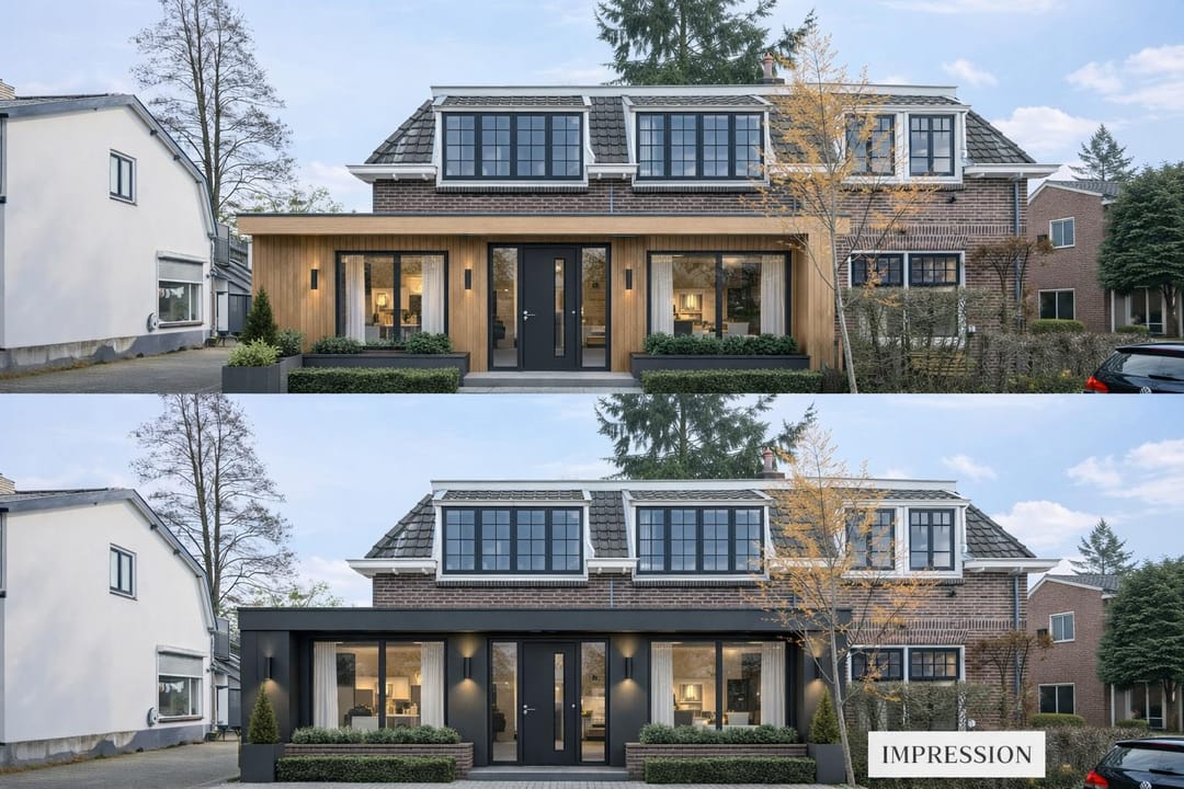 - Impressiefoto’s zijn toegevoegd om een mogelijke toekomstige situatie weer te geven, voor deze wijziging is een vergunning nodig. Aan deze impressies kunnen geen rechten worden ontleend