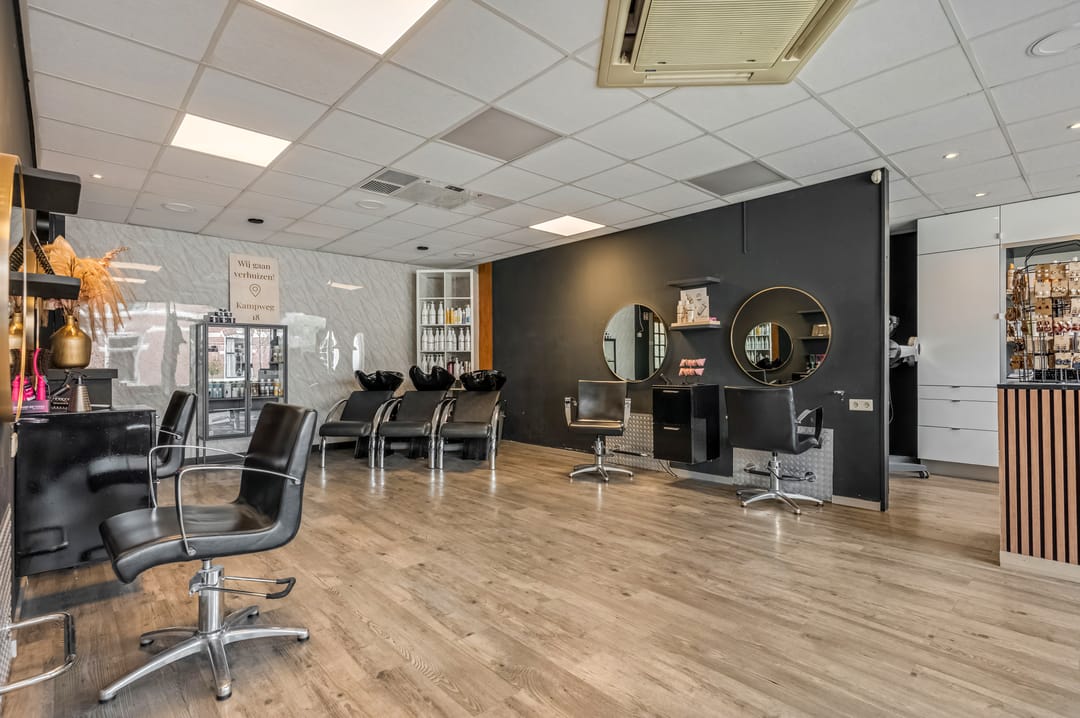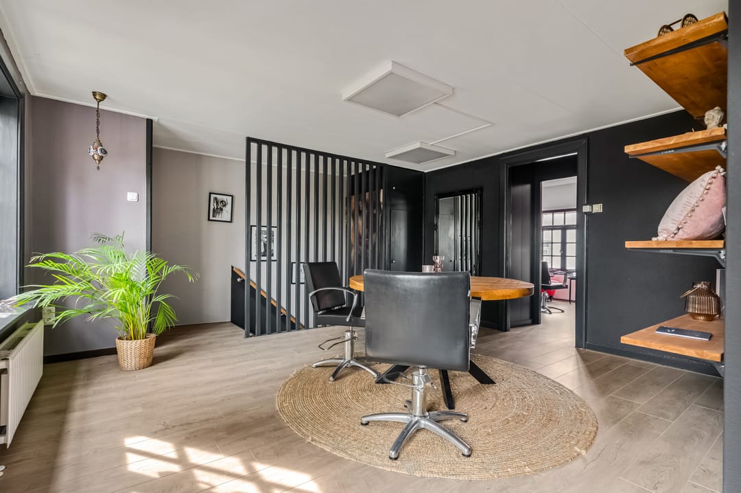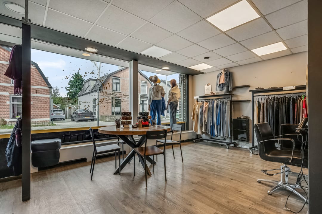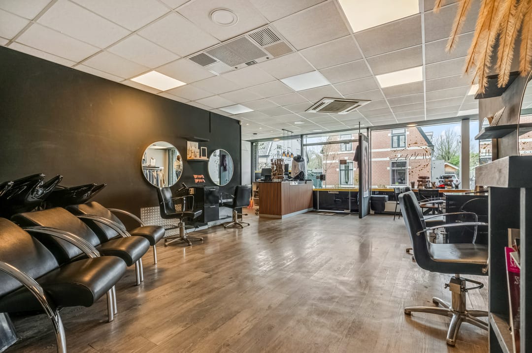 De begane grond beschikt over een verrassend ruime indeling. Momenteel is hier een kapsalon gevestigd, wat betekent dat de ruimte volledig naar eigen wens en inzicht kan worden heringericht tot een comfortabele leefruimte. Of je nu droomt van een royale woonkeuken, een lichte woonkamer of een combinatie van wonen en werken: hier kan het allemaal.