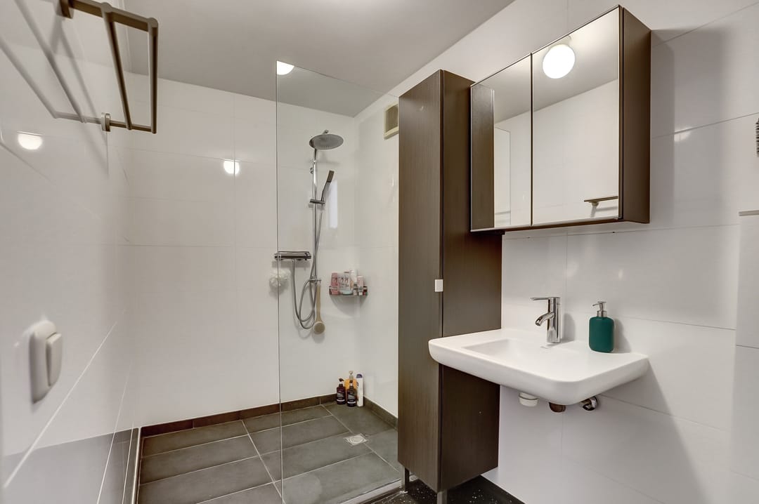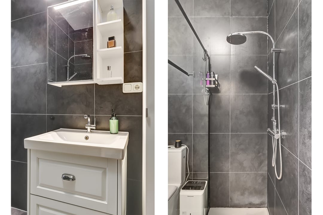 -Badkamer voorzien van douche, toilet en wastafel