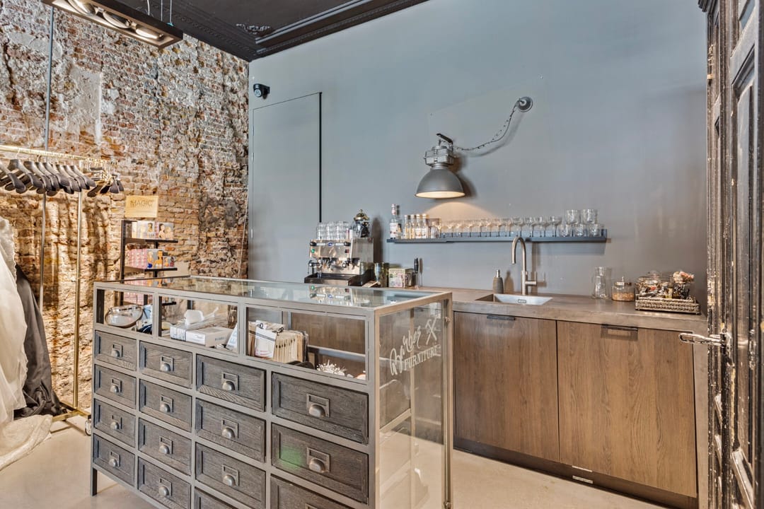 - In het plafond zijn aansluitpunten voor het plaatsen door huurder van verlichting; - toiletruimte voorzien van gedeelte mozaïek tegeltjes en gedeeltelijk gladde wanden, hangend toilet en fonteintje; - moderne pantry passend in het geheel en de ruimte;