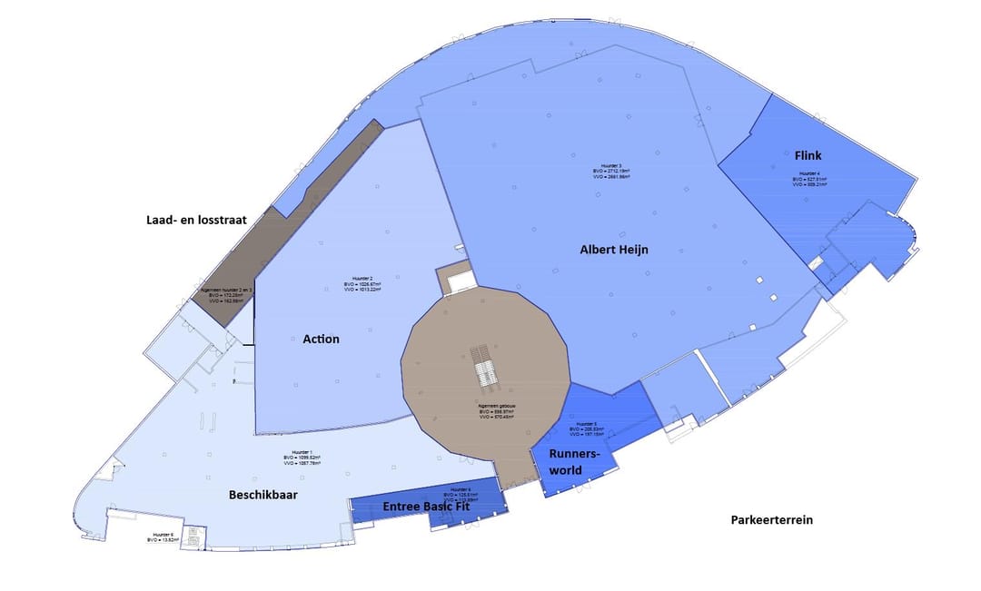 Het is één winkelruimte, eventueel kan het opgesplitst worden in 2 winkels, met een gezamenlijke expeditieruimte en aansluiting op de laad/losstraat voor de bevoorrading van de winkel(s).