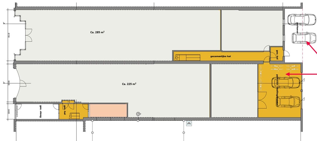 De aangeboden huur is voor een ruimte van 450 m² VVO. Kale / casco ruimte.
