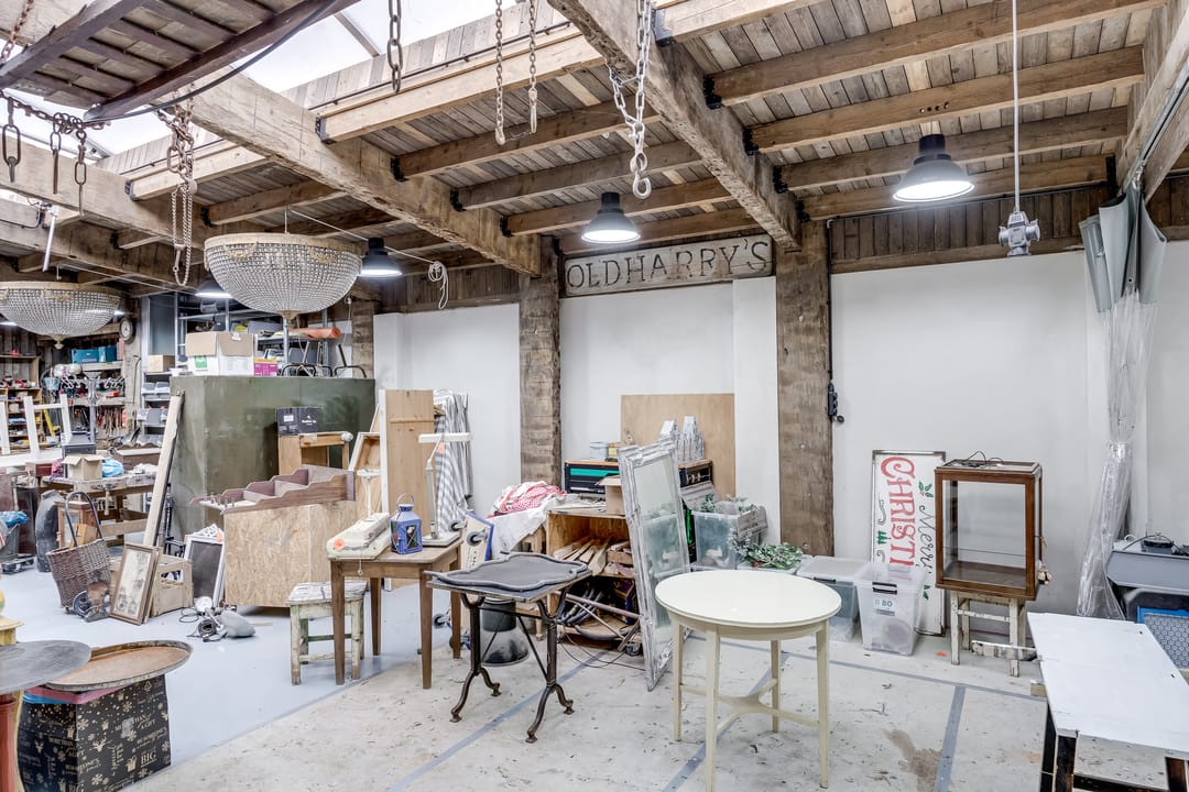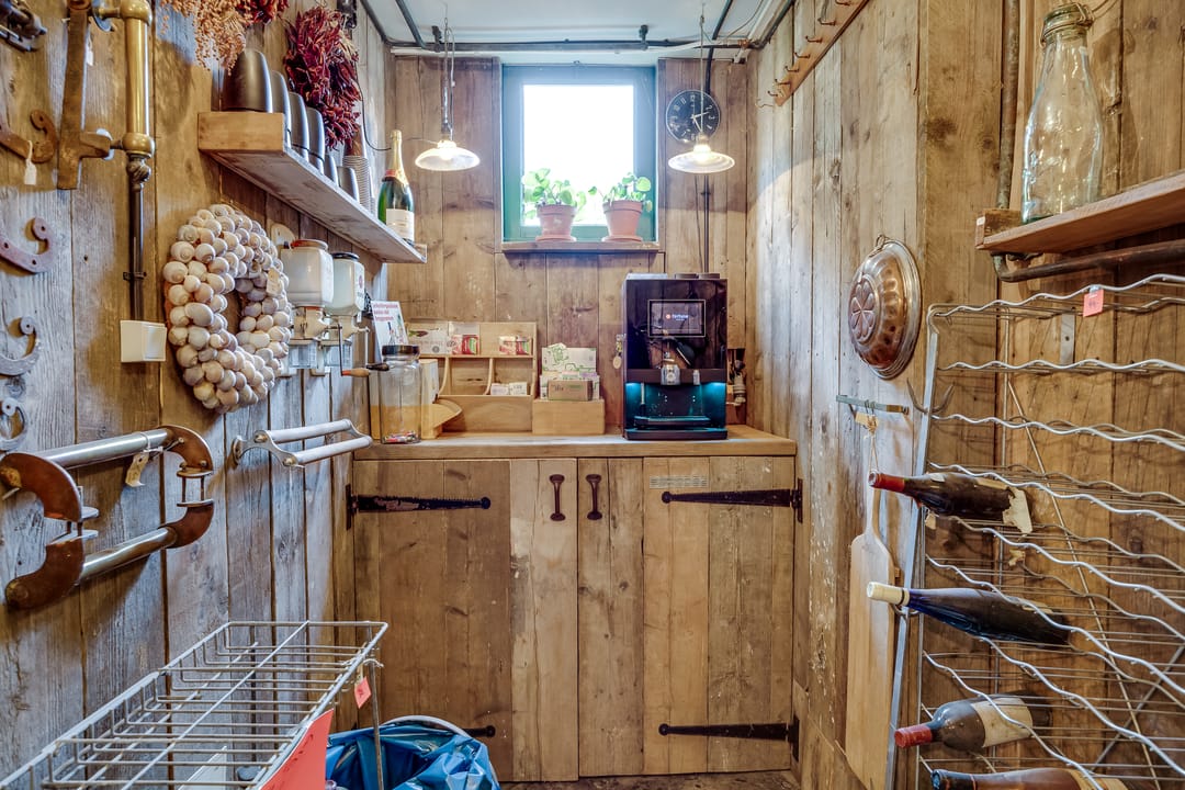 Winkelruimte met pantry, toilet, opslagruimte en magazijn.