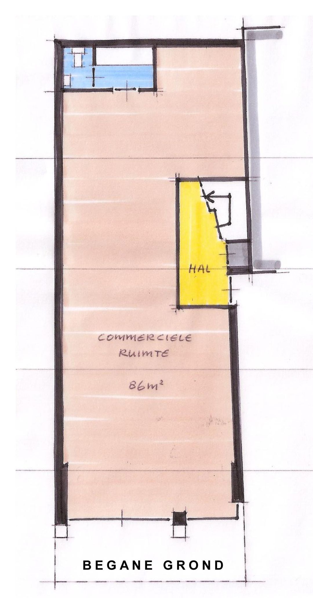 ± 86 m² winkel-/horeca ruimte.