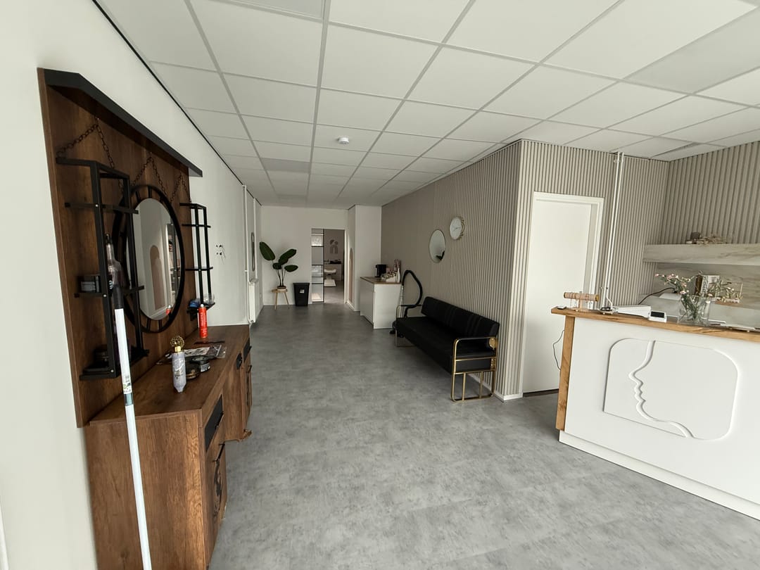 In addition to the beautiful facade, the store has double glass entrance doors at the rear. The walls have plasterwork, the ceilings have a new extra insulated suspended ceiling with LED lighting. The floor is a smooth cast floor.