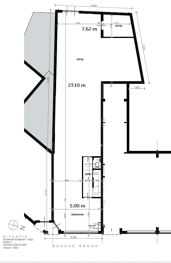 Deze fraaie, winkel/opslag/kantoorruimte met kantoor op de eerste en tweede verdieping, is op zeer korte afstand van het fraaie Strijp S en station Eindhoven Strijp-S gelegen.