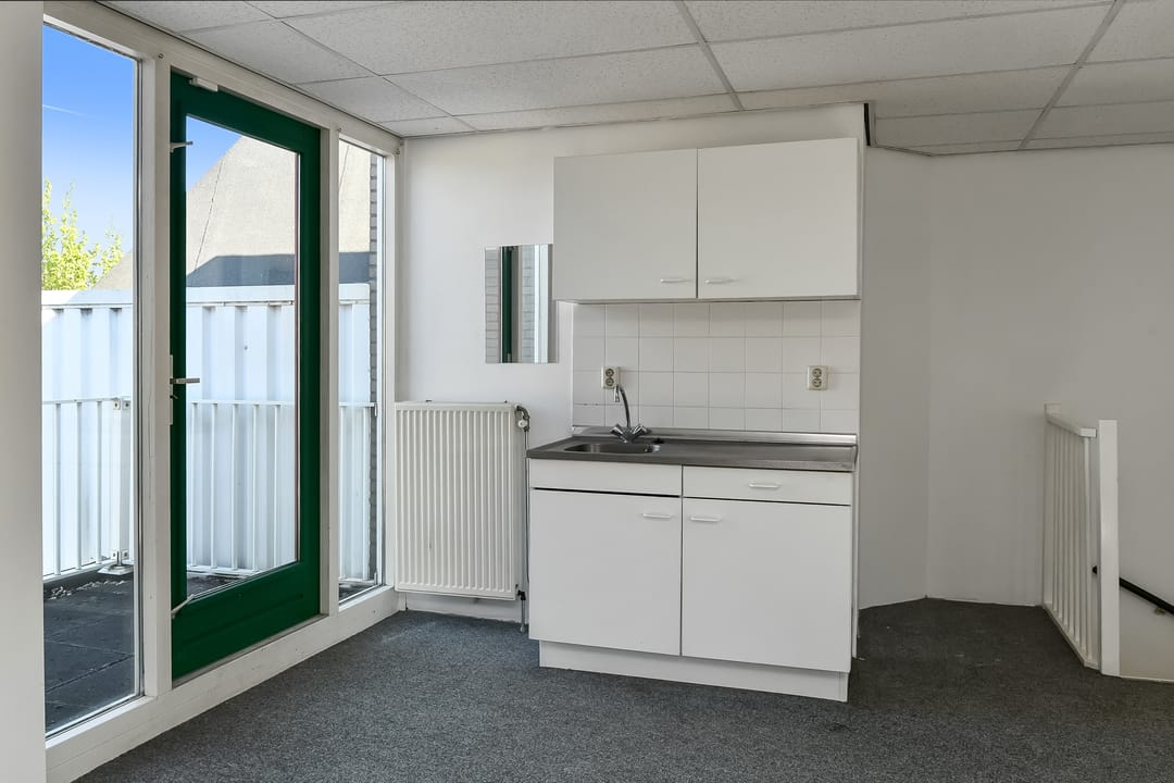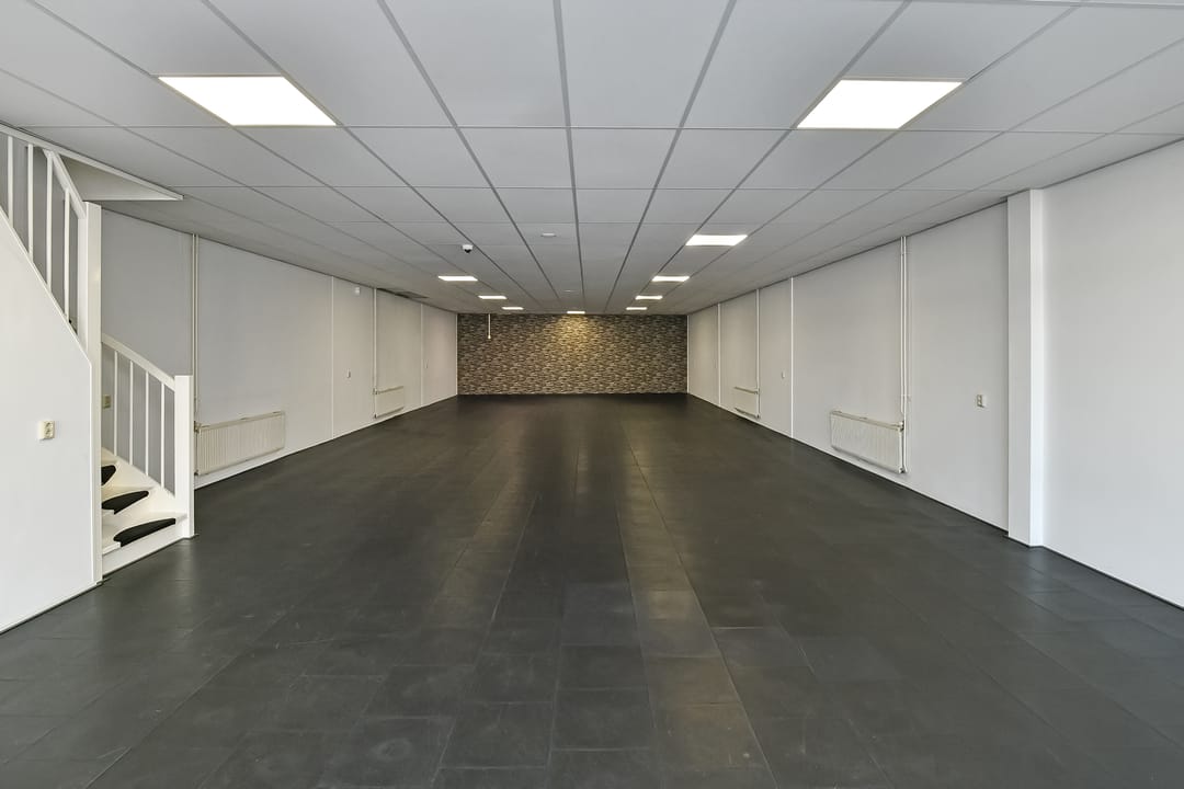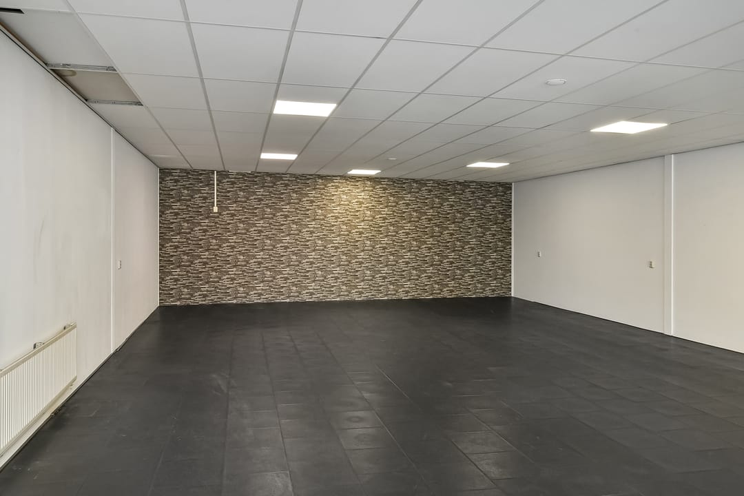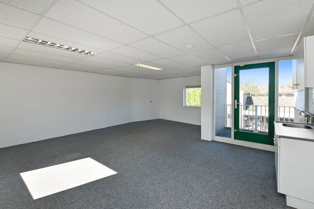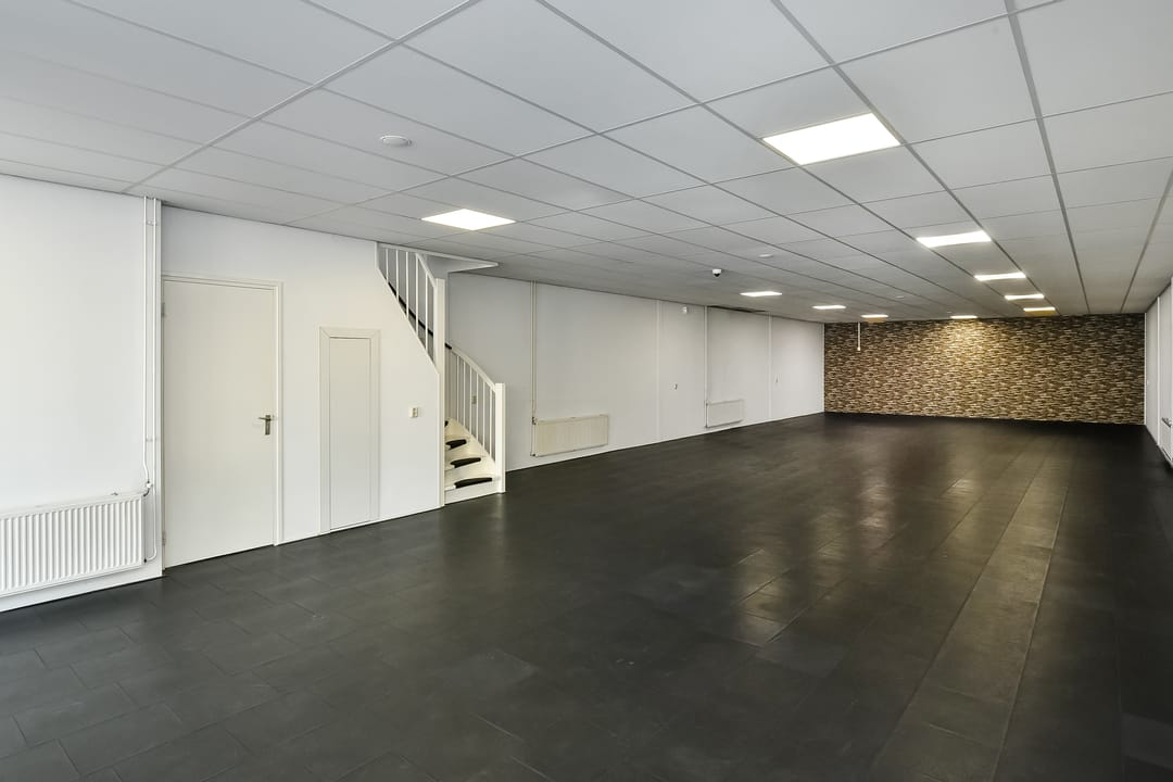 in de huidige staat (met o.a. wand- en vloerafwerking, systeemplafond, pantry, elektra en cv-installatie), waarbij er casco wordt verhuurd.