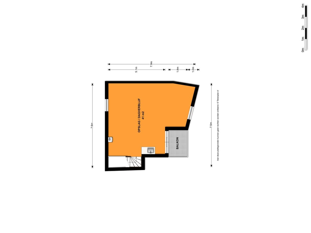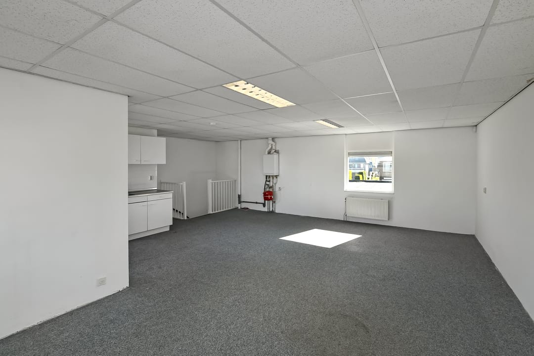 op de verdieping is een vloeroppervlak van ca. 41m² en bevindt zich een open ruimte t.b.v. opslag/magazijn/kantine en is een pantry aanwezig en aansluitend een balkon.