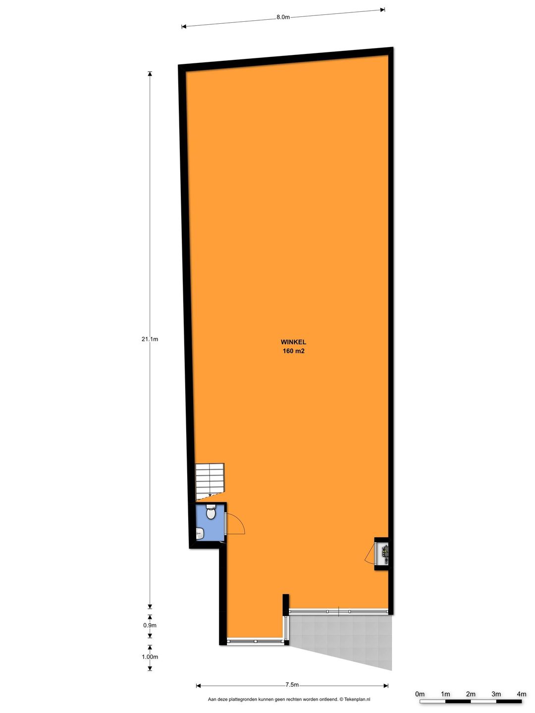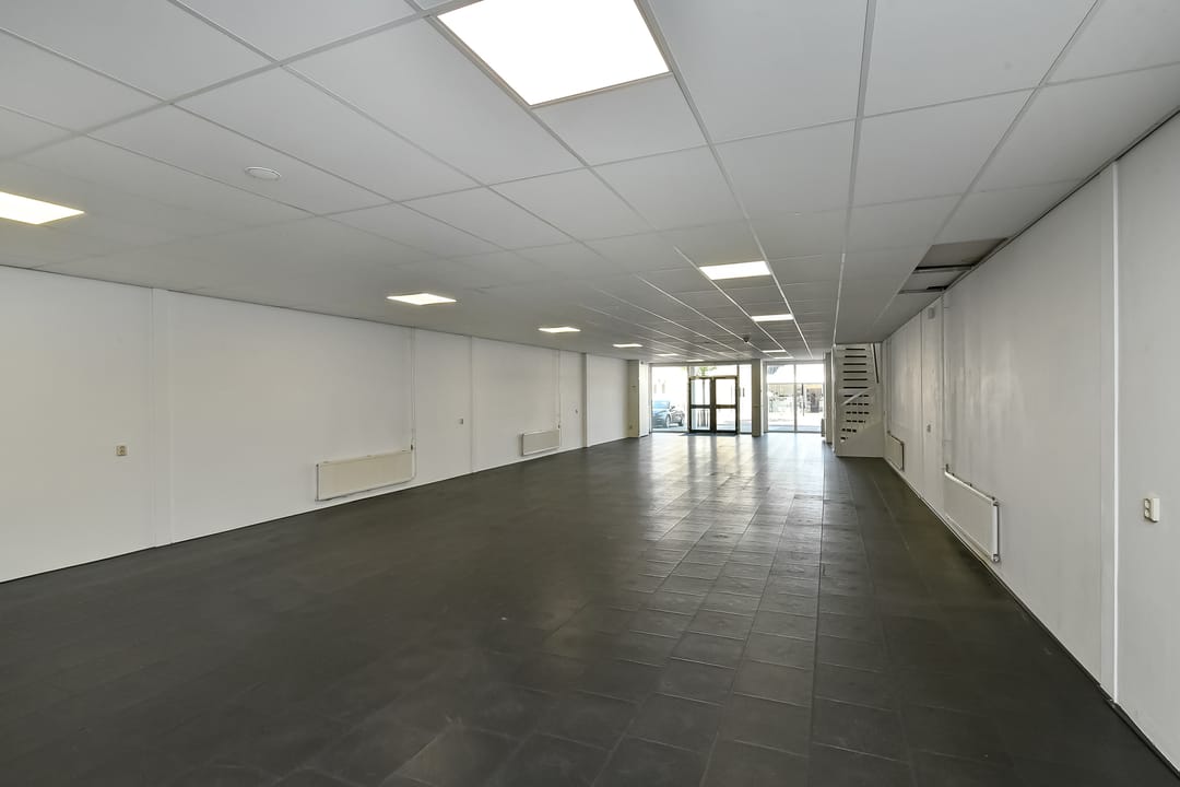 het winkelpand heeft op de begane grond een netto vloeroppervlak van ca. 160m² en is als volgt ingedeeld;