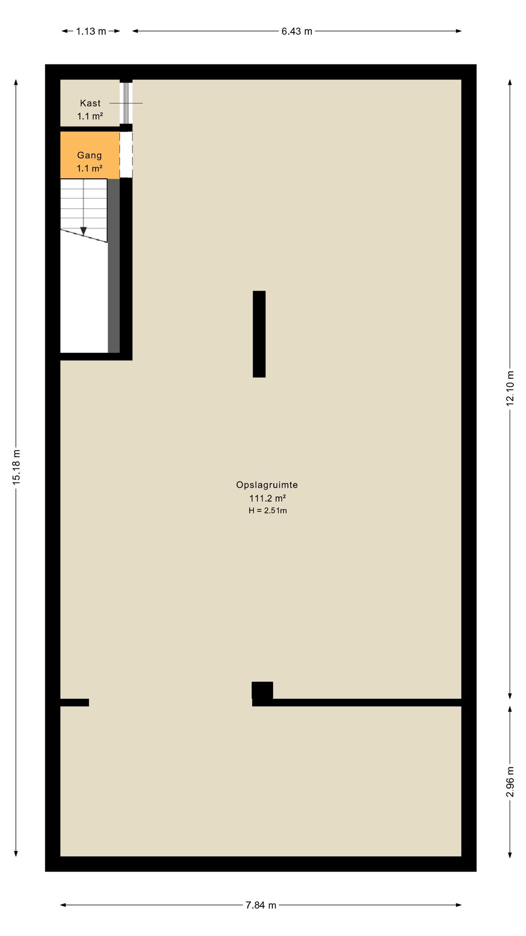 Desgewenst kan de kelder eenvoudig weer bij de begane grond worden betrokken door de nog aanwezige brede trap.
