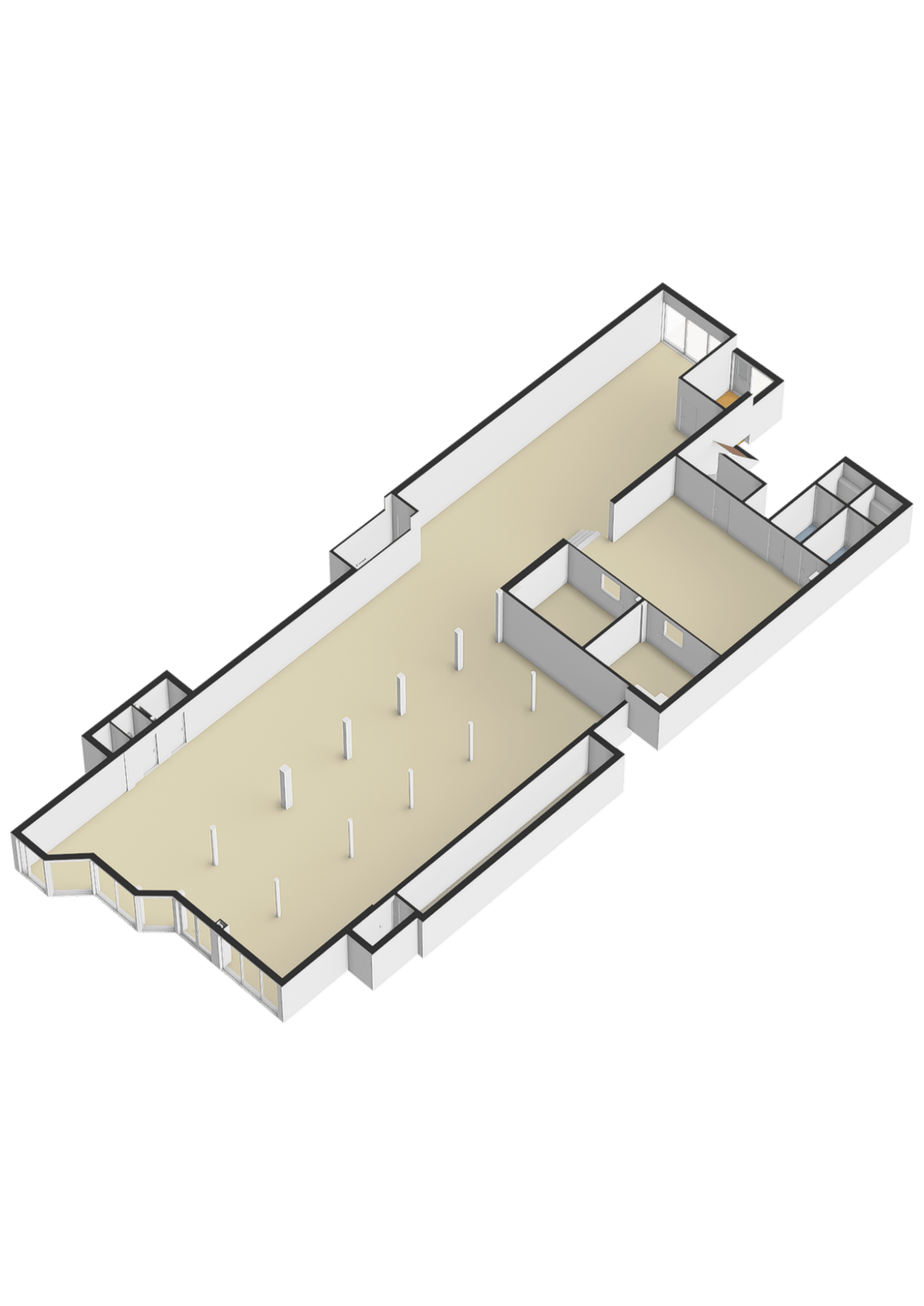 Oplevering vindt plaats in huidige staat. Verhuurd wordt alleen het casco.