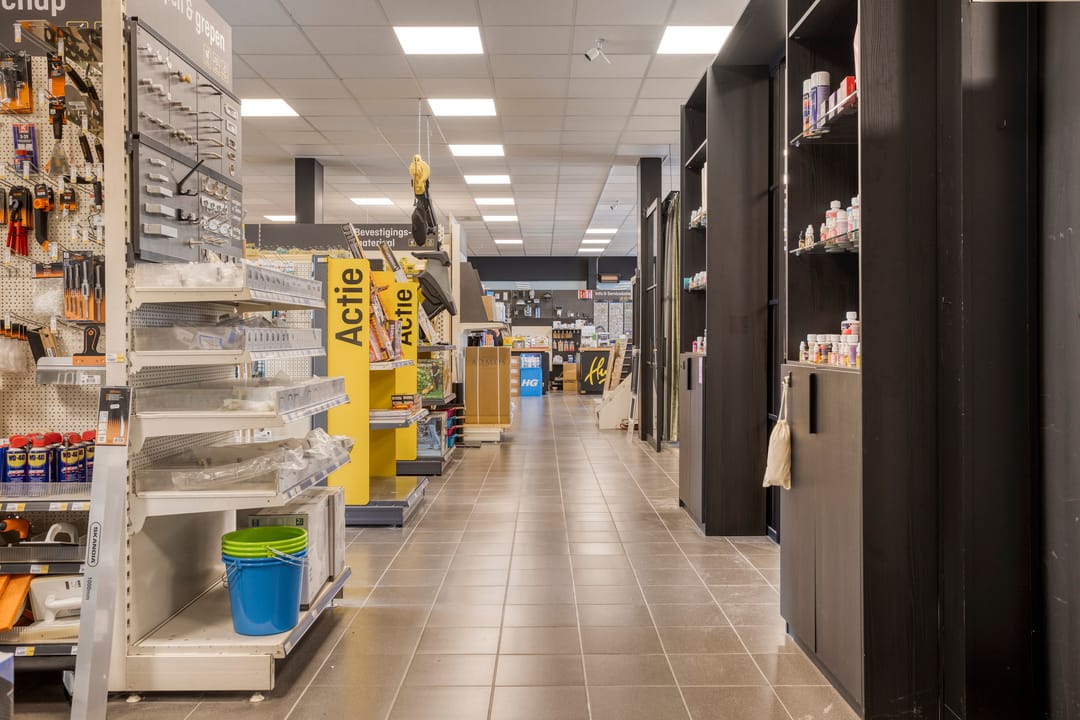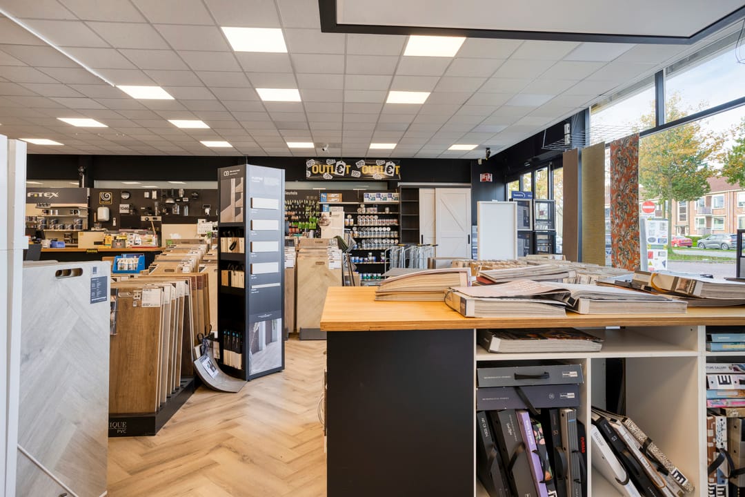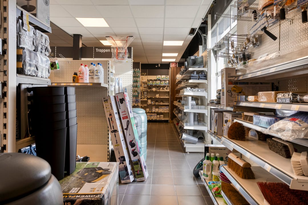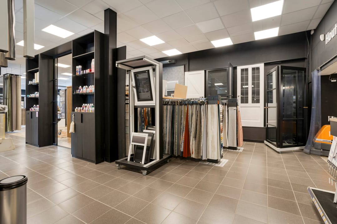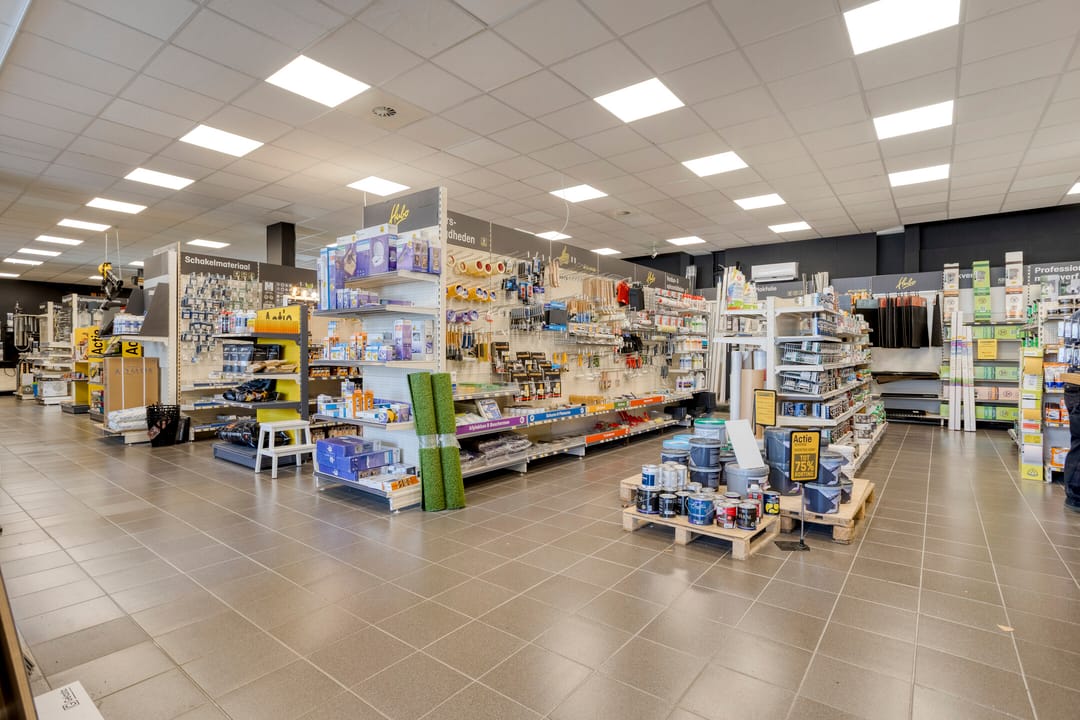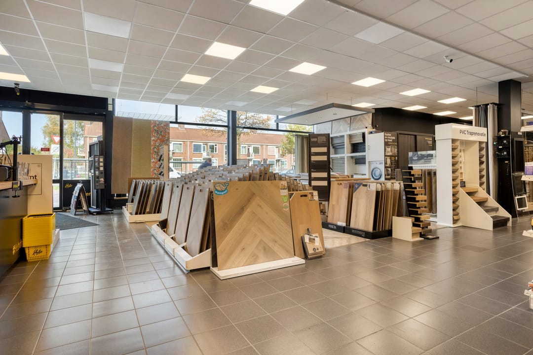 De winkelruimte is voorzien van verkoopruimte met een oppervlakte van ca. 400 m², werkplaats met opslagruimte met een oppervlakte van ca. 280 m². Op de verdieping bevindt zich een kantoor met een kantine met een oppervlakte van ca. 30 m²