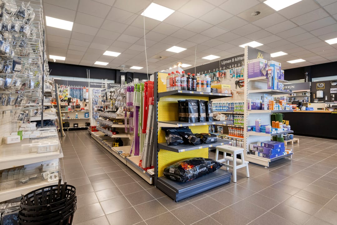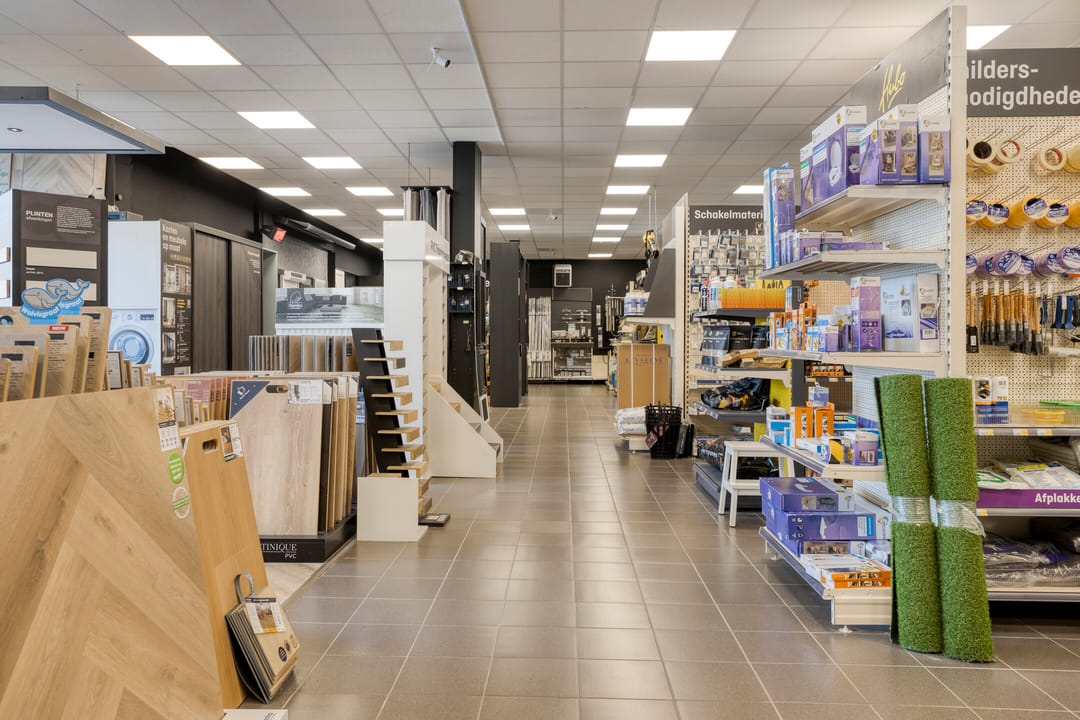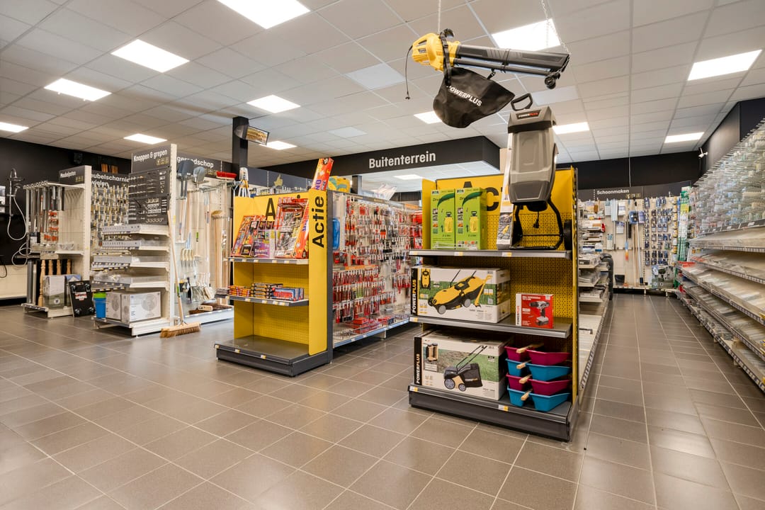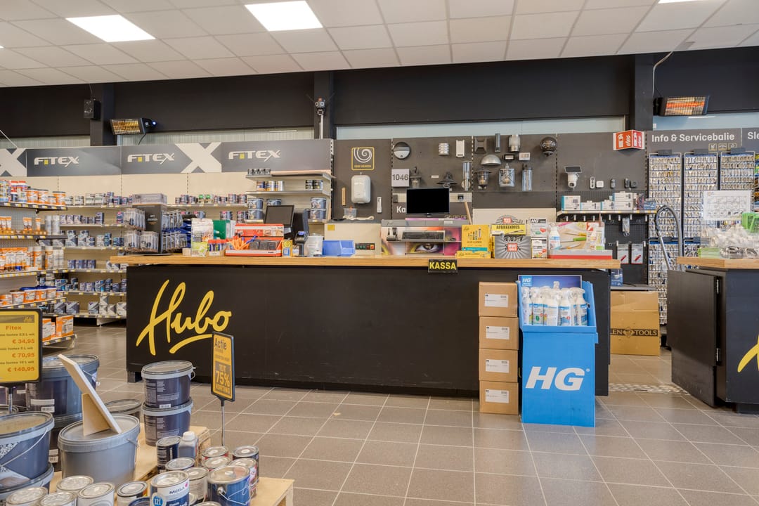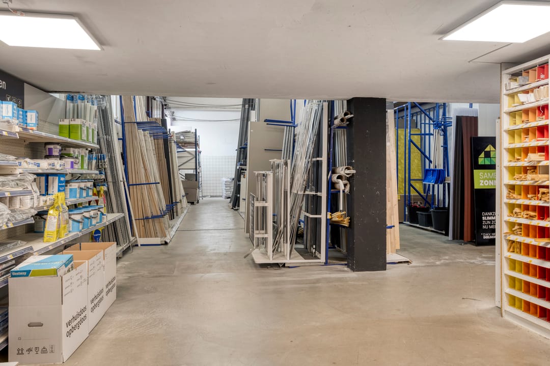 De winkelruimte is voorzien van verkoopruimte met een oppervlakte van ca. 400 m², werkplaats met opslagruimte met een oppervlakte van ca. 280 m². Op de verdieping bevindt zich een kantoor met een kantine met een oppervlakte van ca. 30 m²