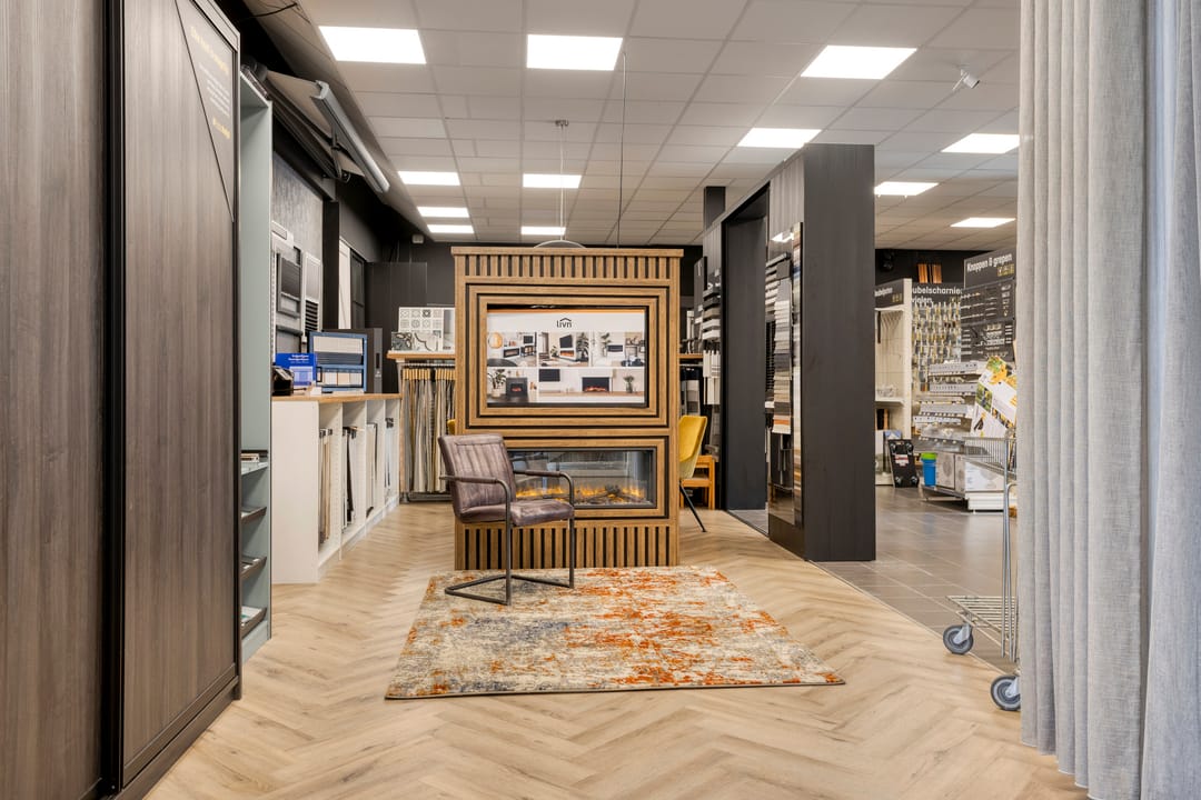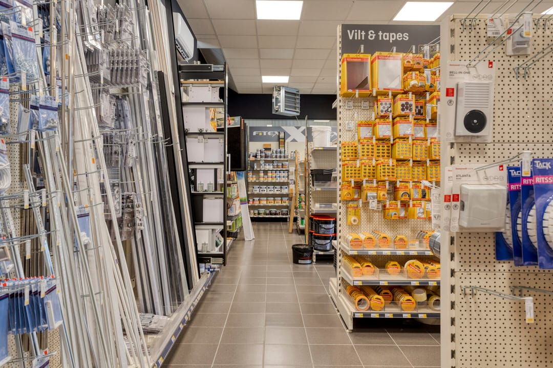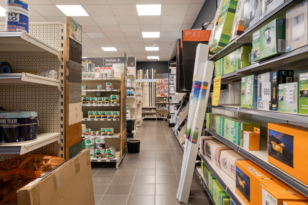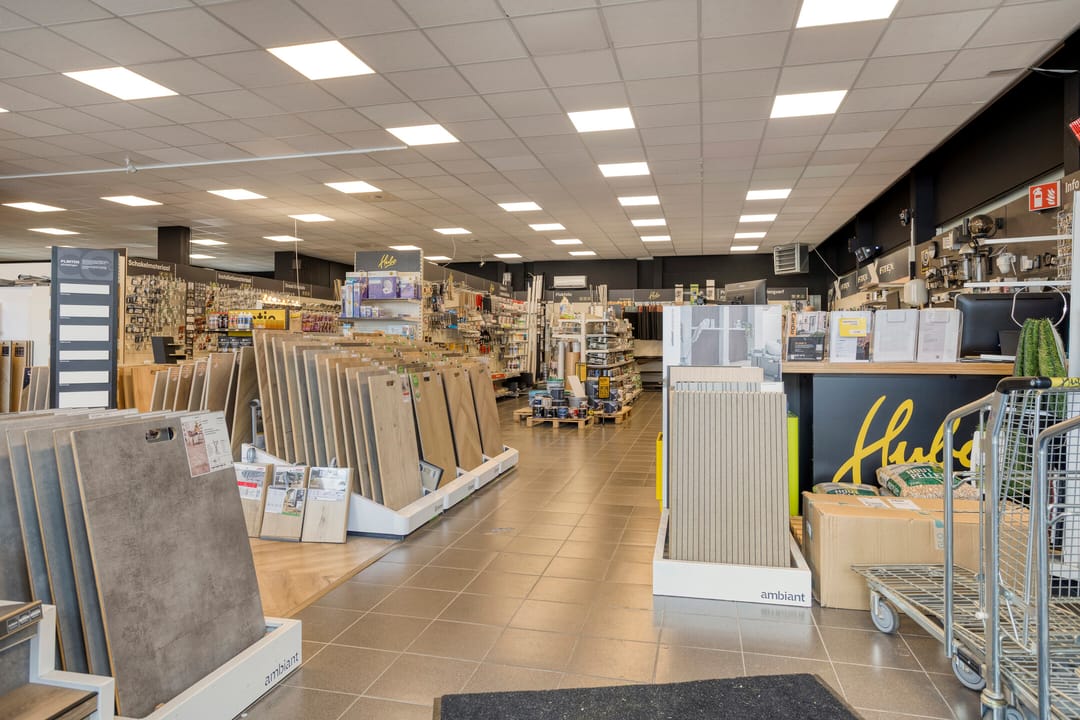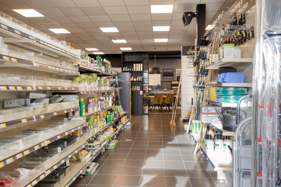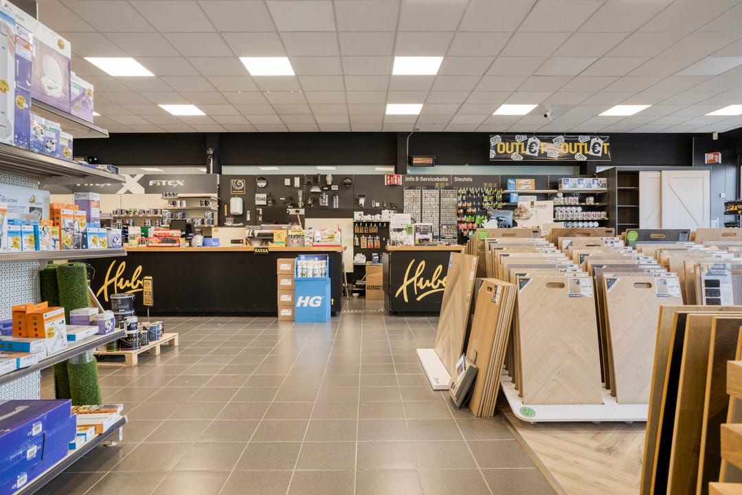 De winkelruimte is voorzien van verkoopruimte met een oppervlakte van ca. 400 m², werkplaats met opslagruimte met een oppervlakte van ca. 280 m². Op de verdieping bevindt zich een kantoor met een kantine met een oppervlakte van ca. 30 m²