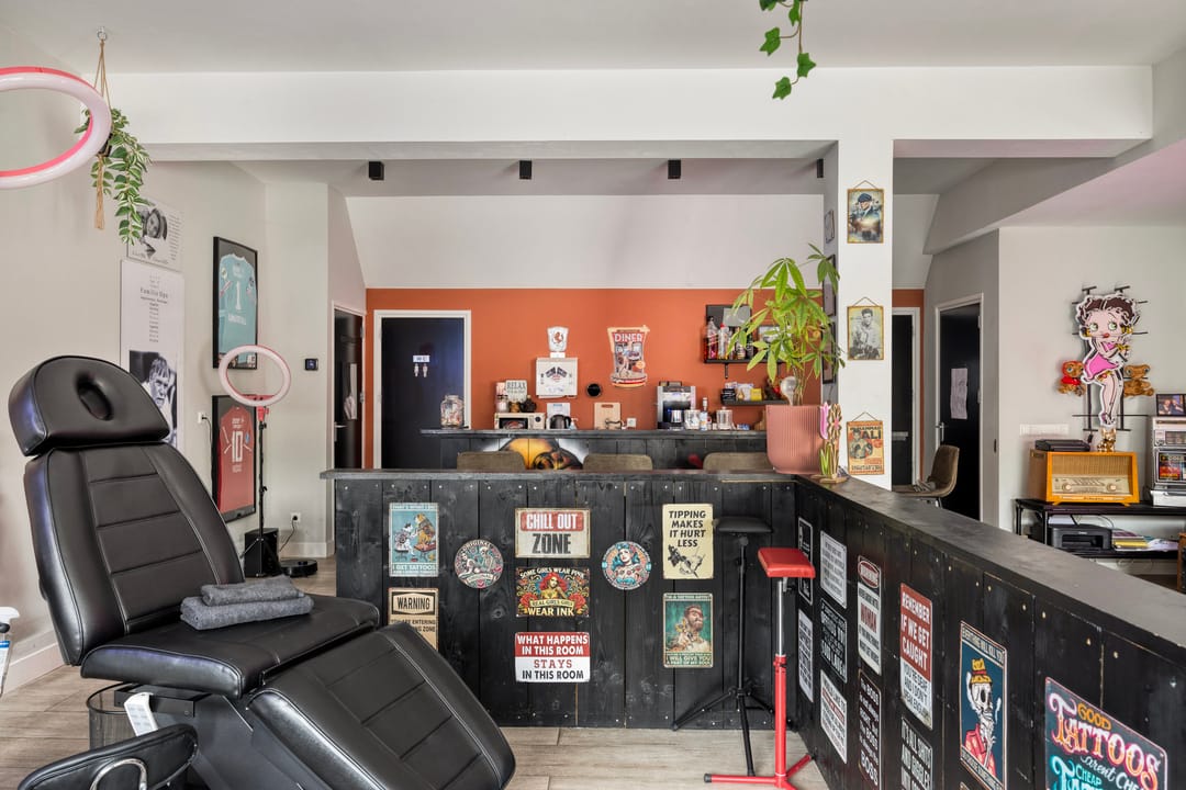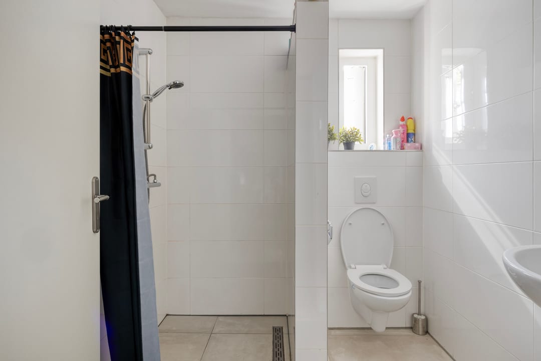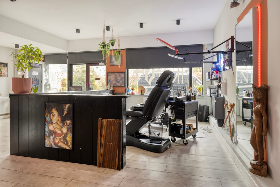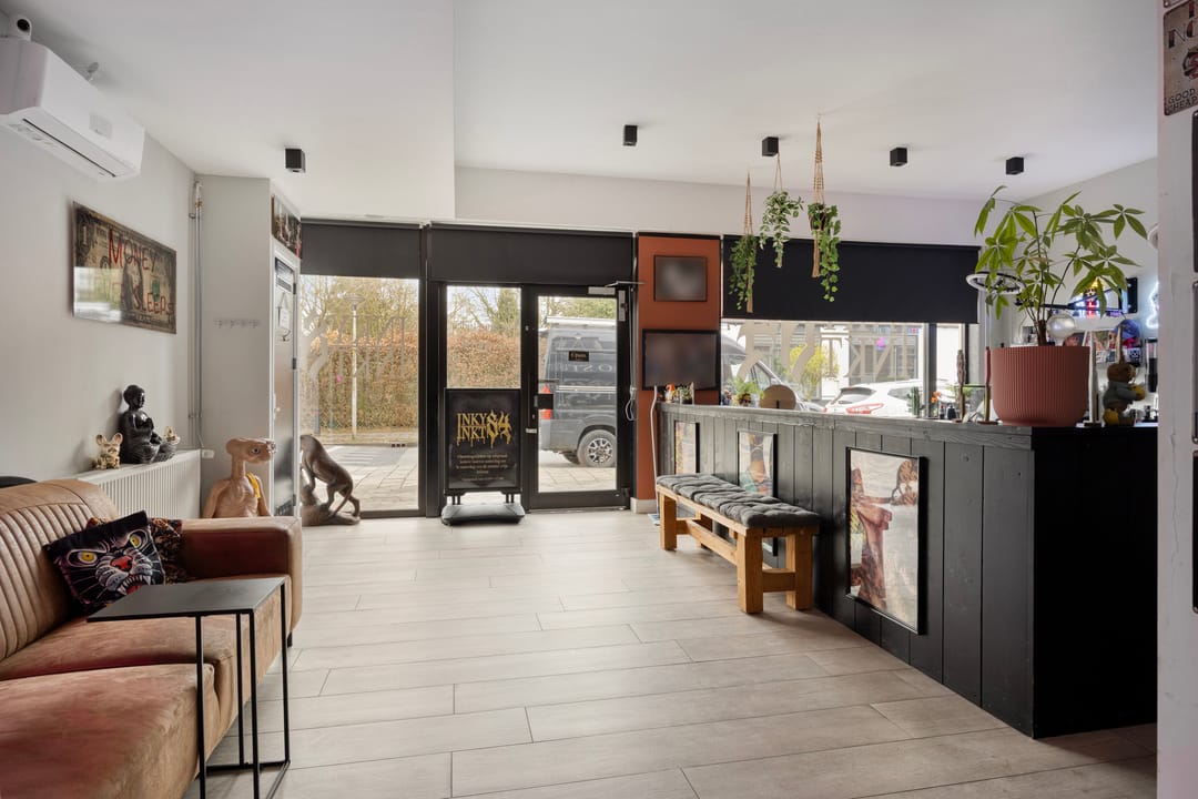 De winkelruimte aan de voorzijde is compleet uitgevoerd en beschikt over een eigen keuken en toilet, wat bijdraagt aan de functionaliteit en verhuurbaarheid.