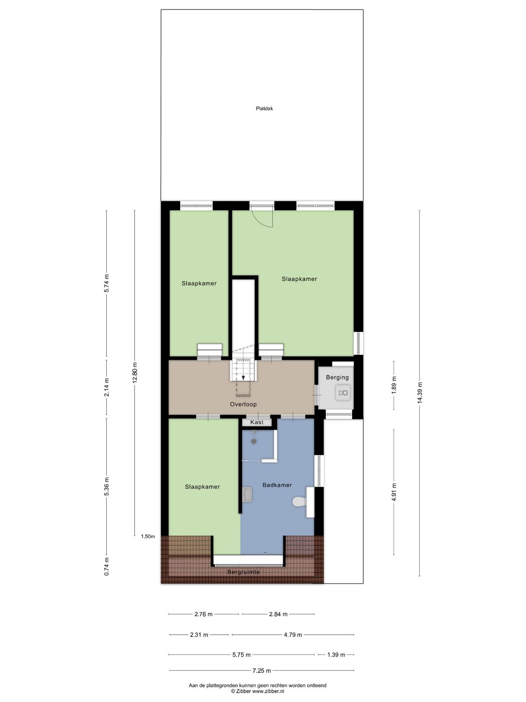 Het totale gebruiksoppervlakte bedraagt circa 274 m².