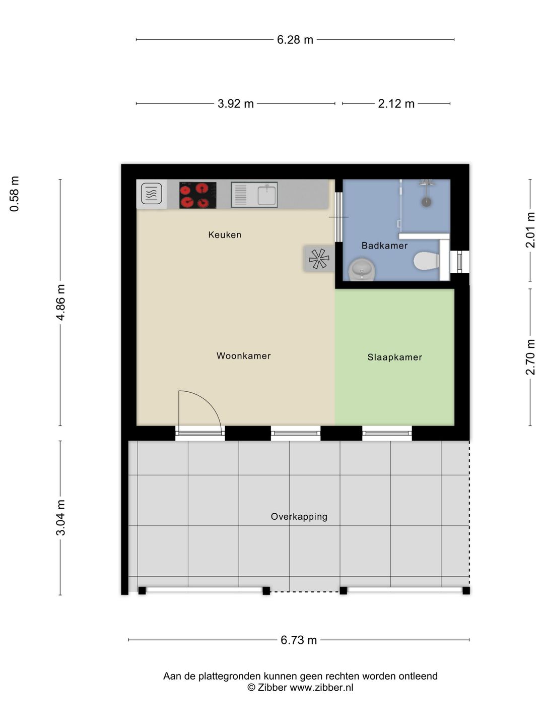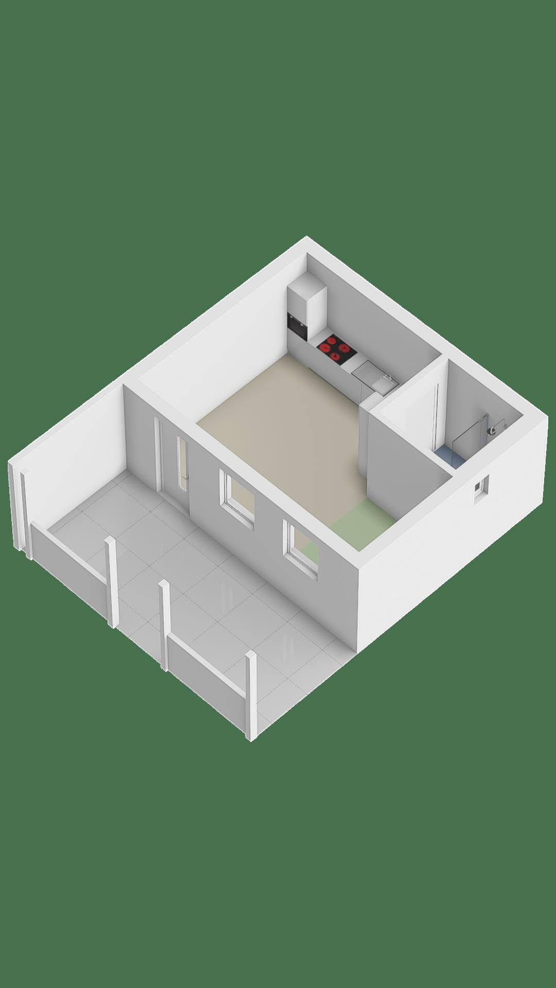 Entree/woonkamer met open keuken, badkamer en toilet. Aan de voorzijde van het gastenverblijf bevindt zich een fraaie veranda.