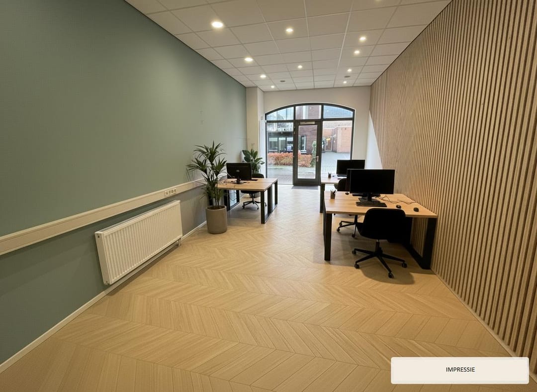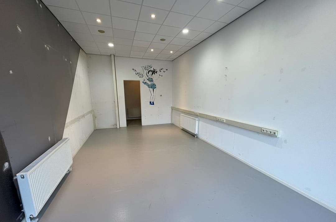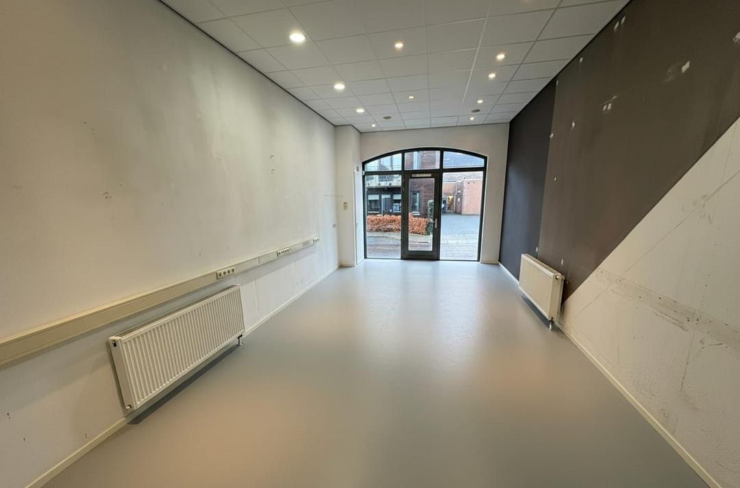 De winkel-/kantoorruimte is gelegen midden in het dorpscentrum en heeft een totaal beschikbare bruto vloeroppervlakte van circa 40 m². De ruimte is geheel zelfstandig en maakt onderdeel uit van een appartementencomplex met goed functionerende VvE. De frontbreedte van circa 4 meter en de royale glaspartij met loopdeur zorgen voor maximale zichtbaarheid en een uitnodigende entree. Dankzij het hoge plafond van circa 3,5 meter voelt de ruimte extra ruim en licht aan.