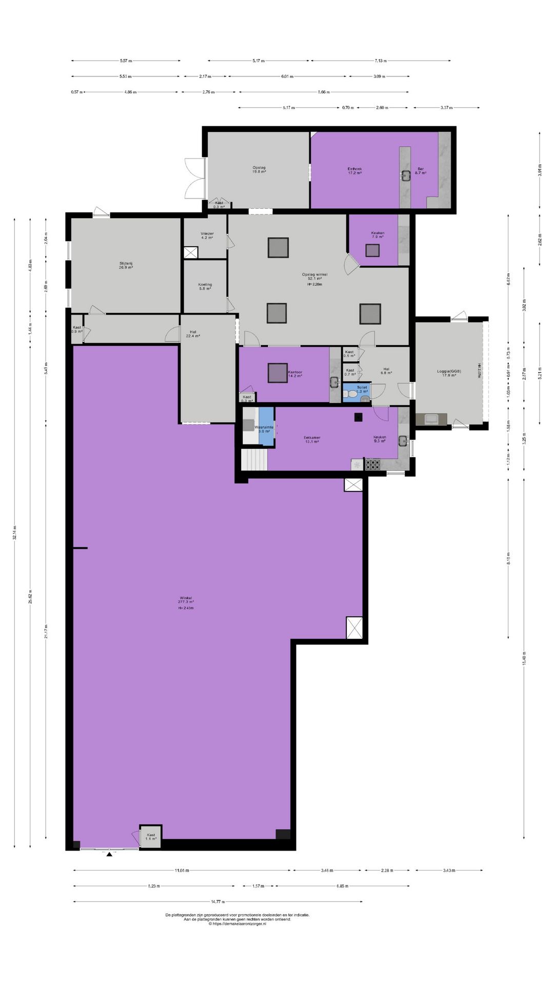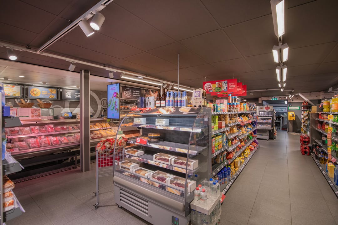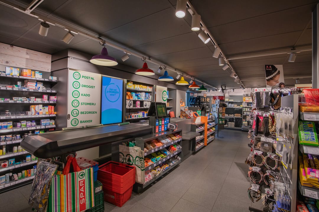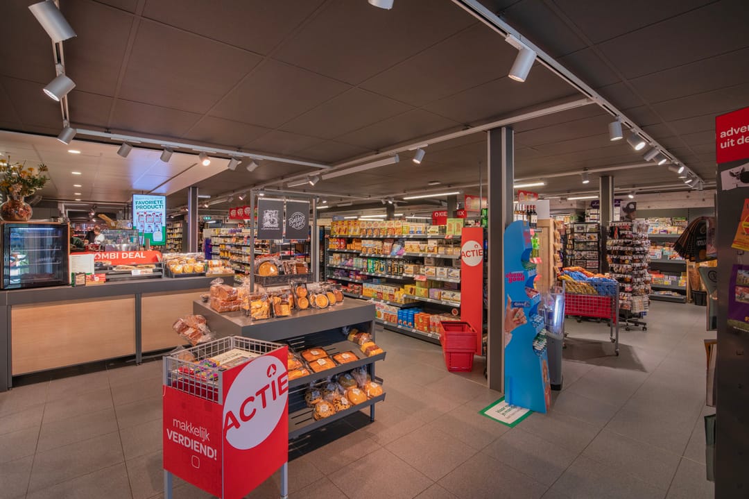 Entree, winkelruimte (voorzien van systeemplafonds, led-verlichting, wandkoeling, koel-/vriesruimte), slijterij, kantoor, magazijn, kantine, achterhal met lichtkoepel, toiletruimte en aangebouwde berging.