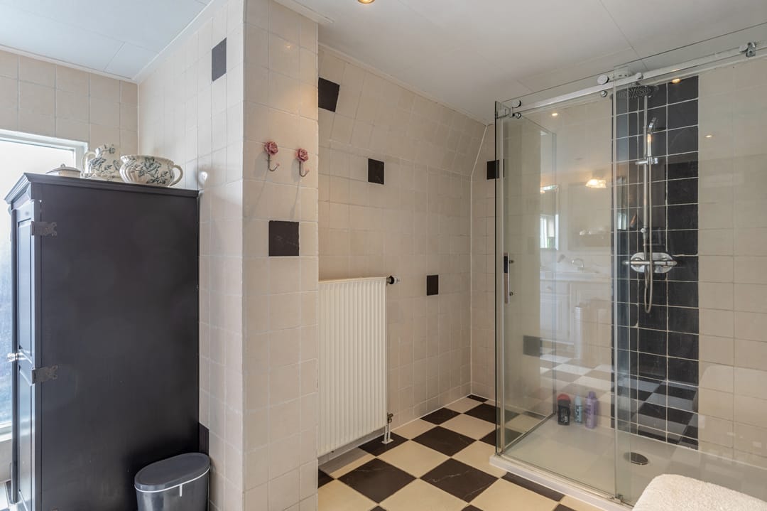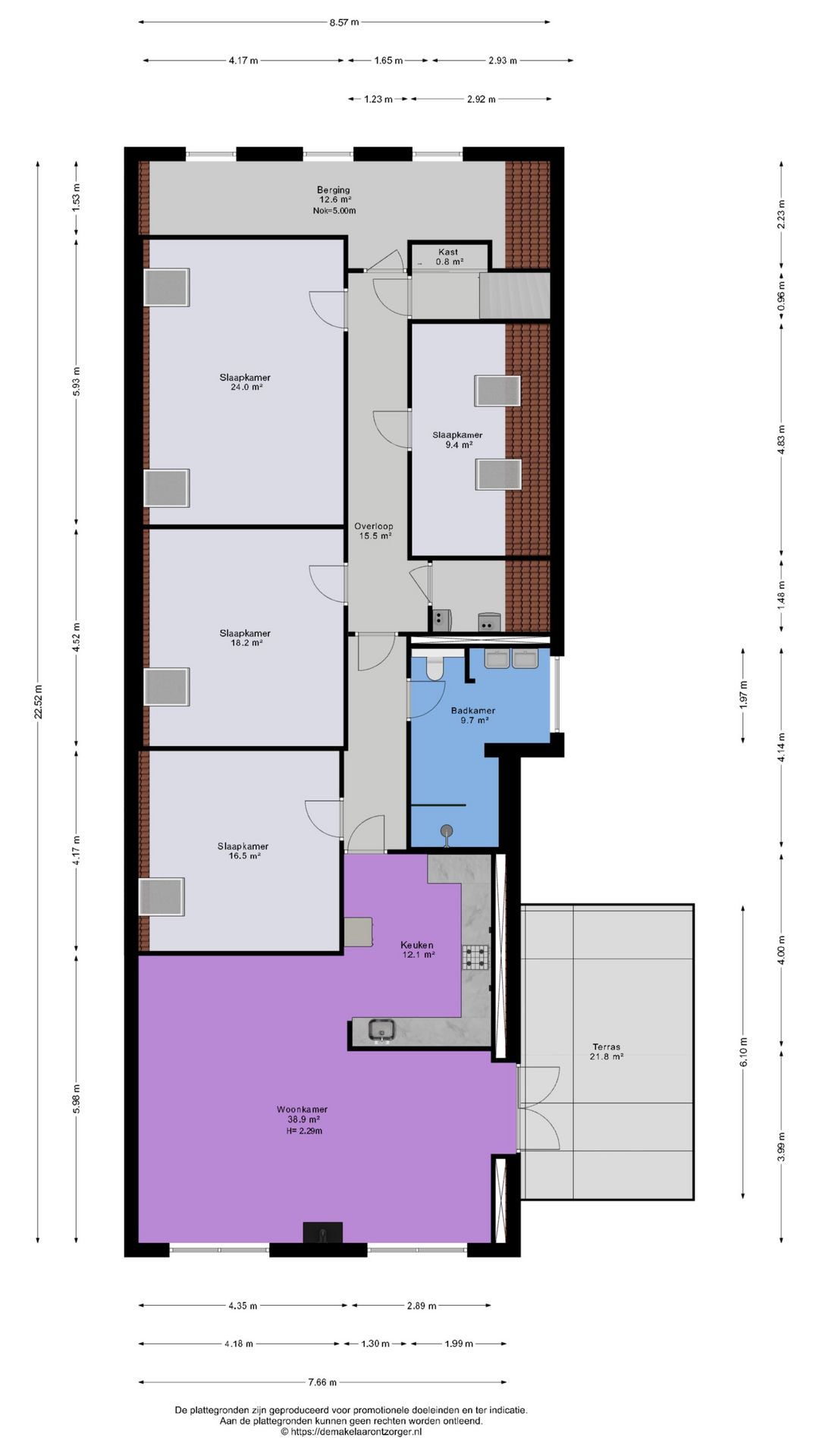 Verdieping: gang, 4 slaapkamers, badkamer (voorzien van douchecabine, toilet en dubbele wastafel), berging, woonkamer, open keuken (voorzien van gasfornuis, oven en koelkast) en dakterras.
