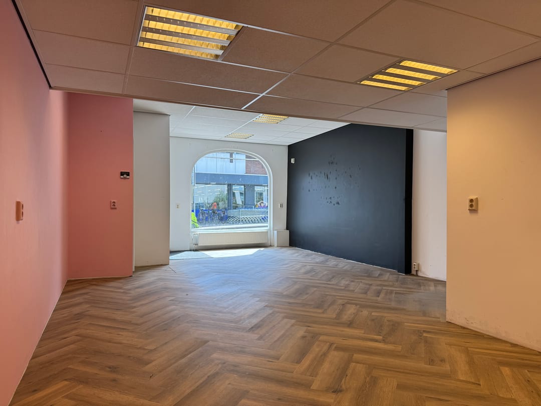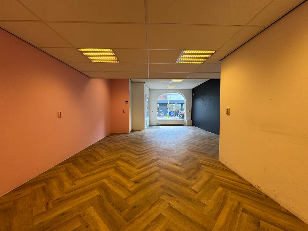 De winkel bestaat uit een portaal met entree, open winkelruimte en een meterkast. Achter in de winkelruimte vindt u een toilet en een keukenopstelling. Ook vindt u hier de buitendeur van de achterzijde van het pand.