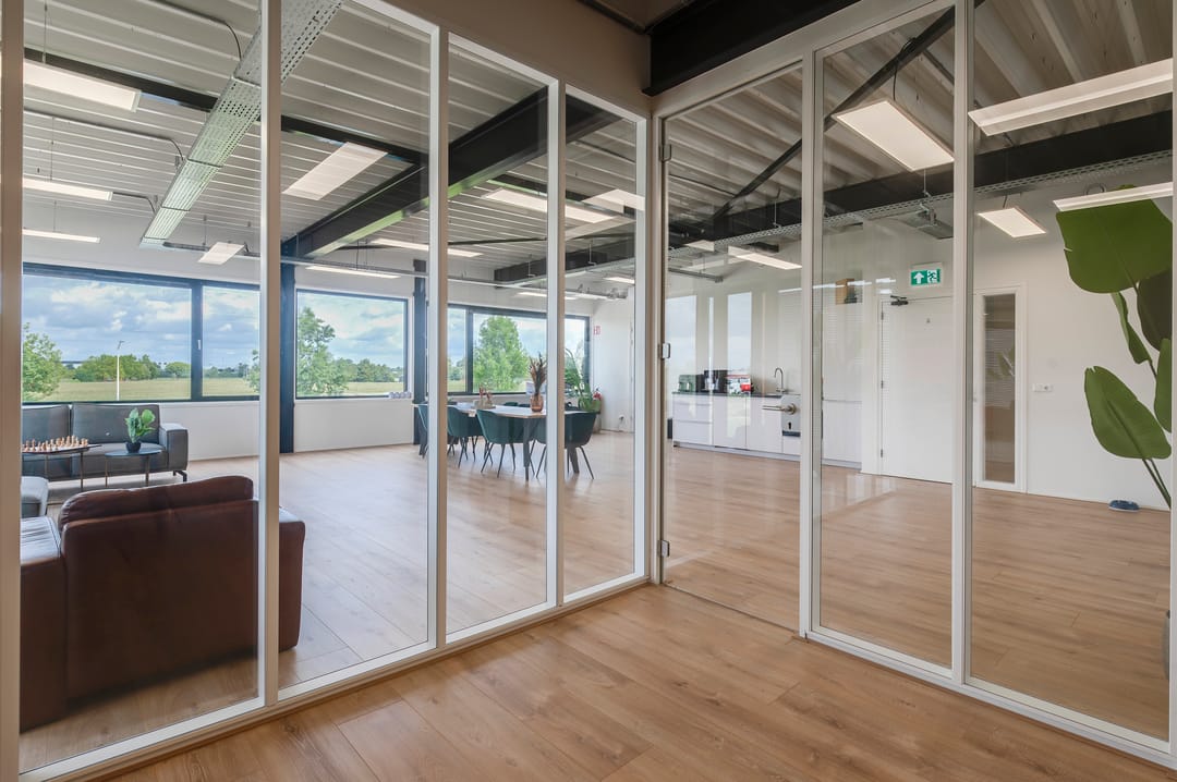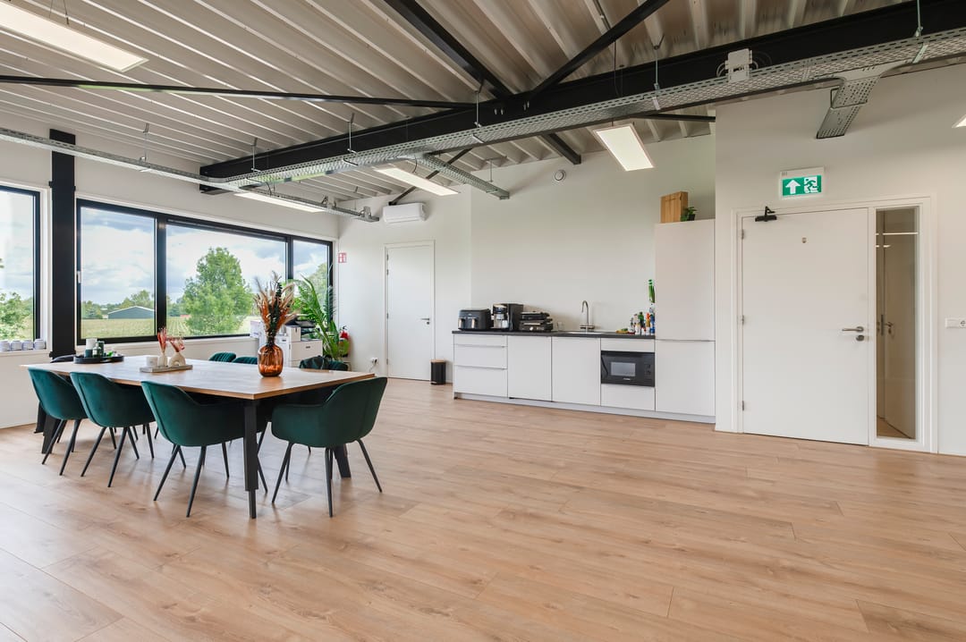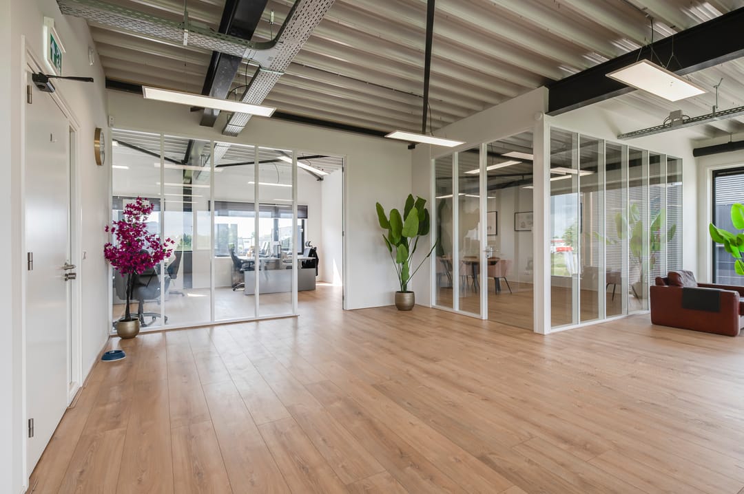 Verdieping: Zeer verzorgd afgewerkte deels open kantoorruimte met veel mogelijkheden waaronder het creëren van werkplekken maar ook ideaal voor een showroom. Daarnaast twee aparte ruimten met glazen scheidingswanden, ideaal om te gebruiken als vergaderkamer of als directiekantoor. Direct bovenaan de trap bevindt zich een toiletgroep. De trapopgang is dichtgemaakt met een wand. Via de overloop en een toegangsdeur komt u in het kantoor. De kantoorruimte is voorzien van laminaat vloer, LED-verlichtingspanelen, meerdere airco units en een ruime pantry welke is voorzien van koel-/vriescombinatie, inbouw magnetron en vaatwasser. Op de verdieping bevindt zich ook de technische ruimte met o.a. de warmtepomp.