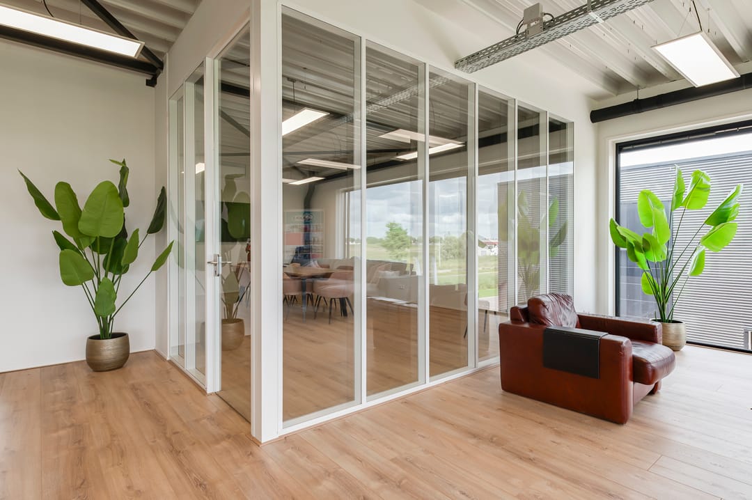 Door de ligging en de grote raampartijen in zowel de voor- en achterzijde als de zijgevel komt er veel licht de ruimte binnen.