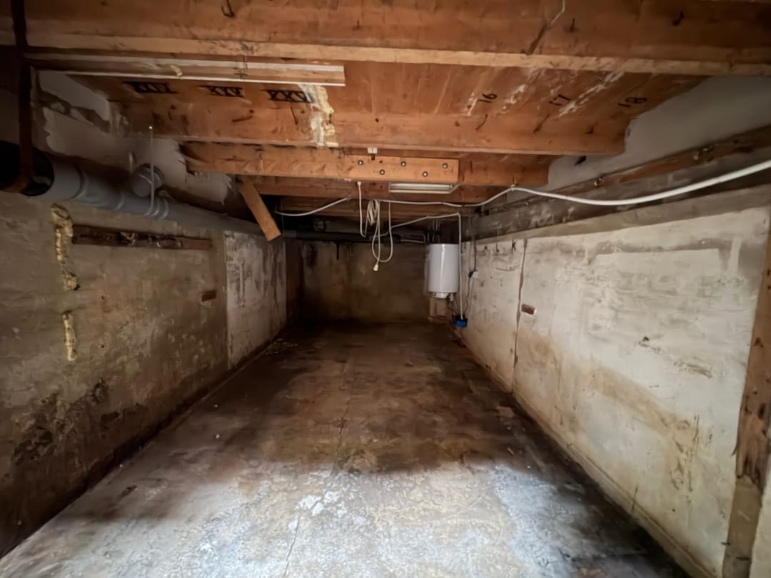 Indeling: winkelruimte, trapkast, pantry, toilet. Kelderruimte te bereiken via het luik bij de voordeur.