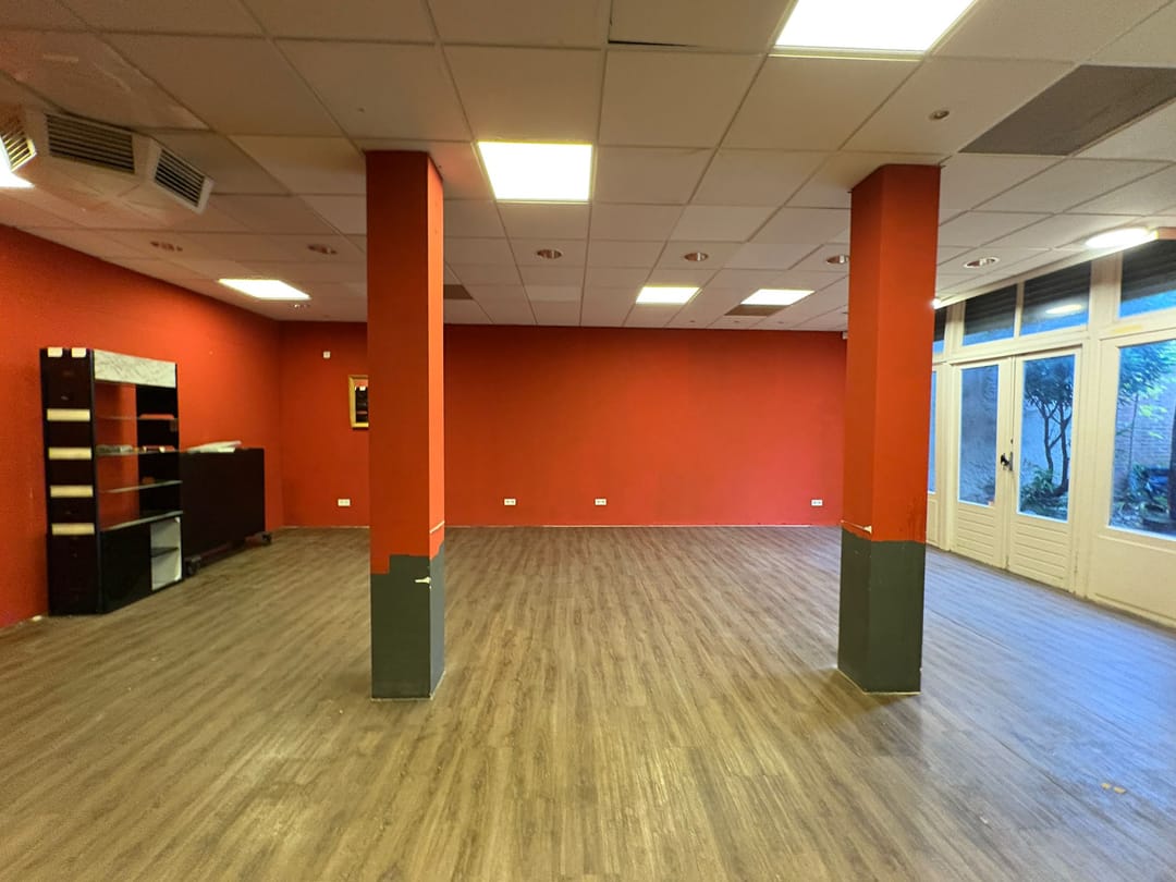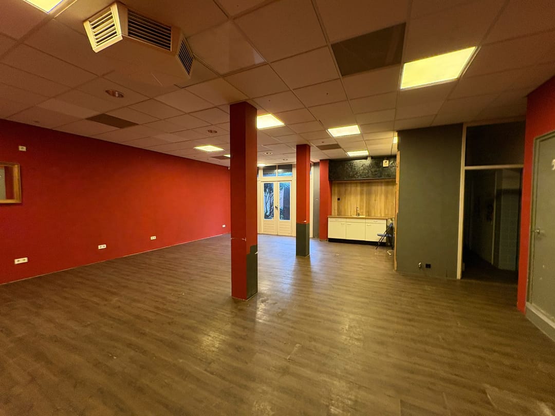 Voorzieningen: Pui, C.V., keuken, toilet (broyeur), verlichting, airco's, beveiliging. Verhuurd wordt uitsluitend het casco.