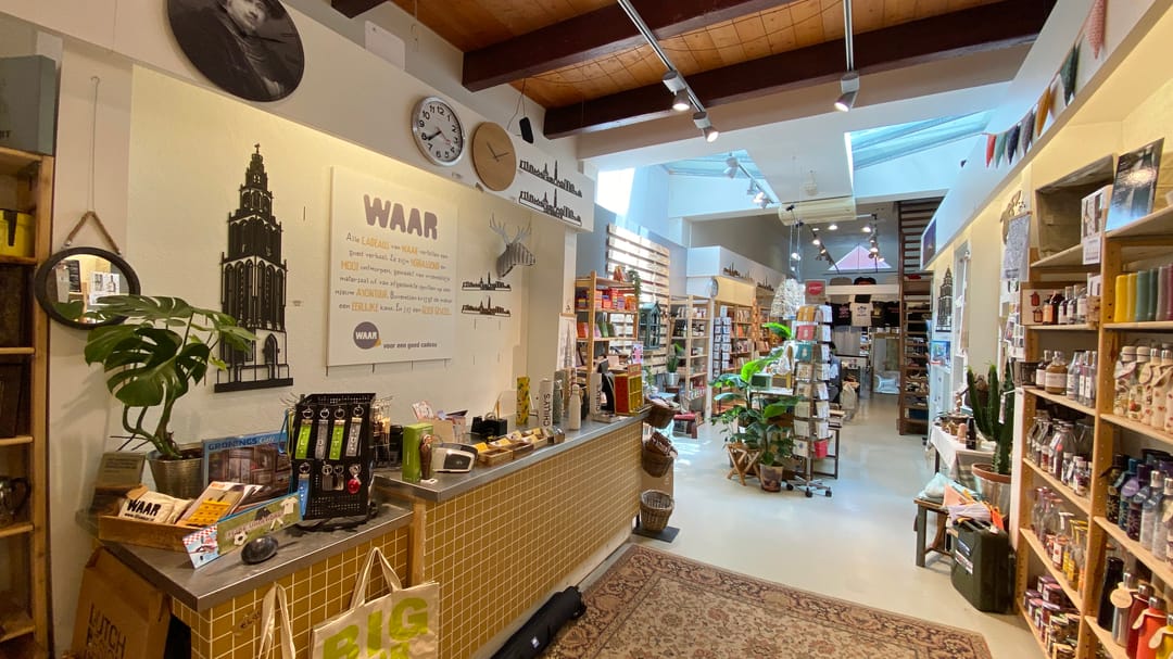 Gelegen op een drukke locatie aan de zuidzijde van de Vismarkt nabij de doorgang ‘Het Koude Gat’, het verbindingsstuk tussen de Herestraat en de Vismarkt. De winkel ligt tussen Flying Tiger en Backwerk en nabij o.a. Bershka, Nikkie, Schoonenberg World of Hearing, Kruidvat, Belsimpel en Nelson Schoenen. Het betref de huidige winkel van WAAR.