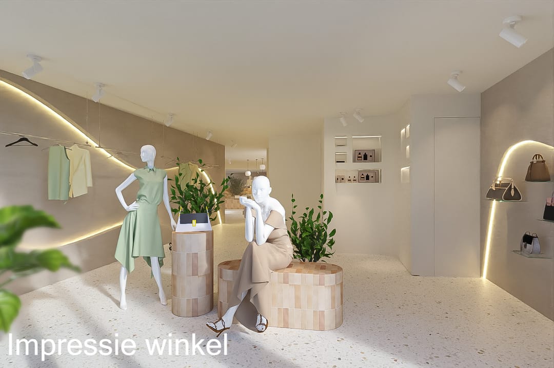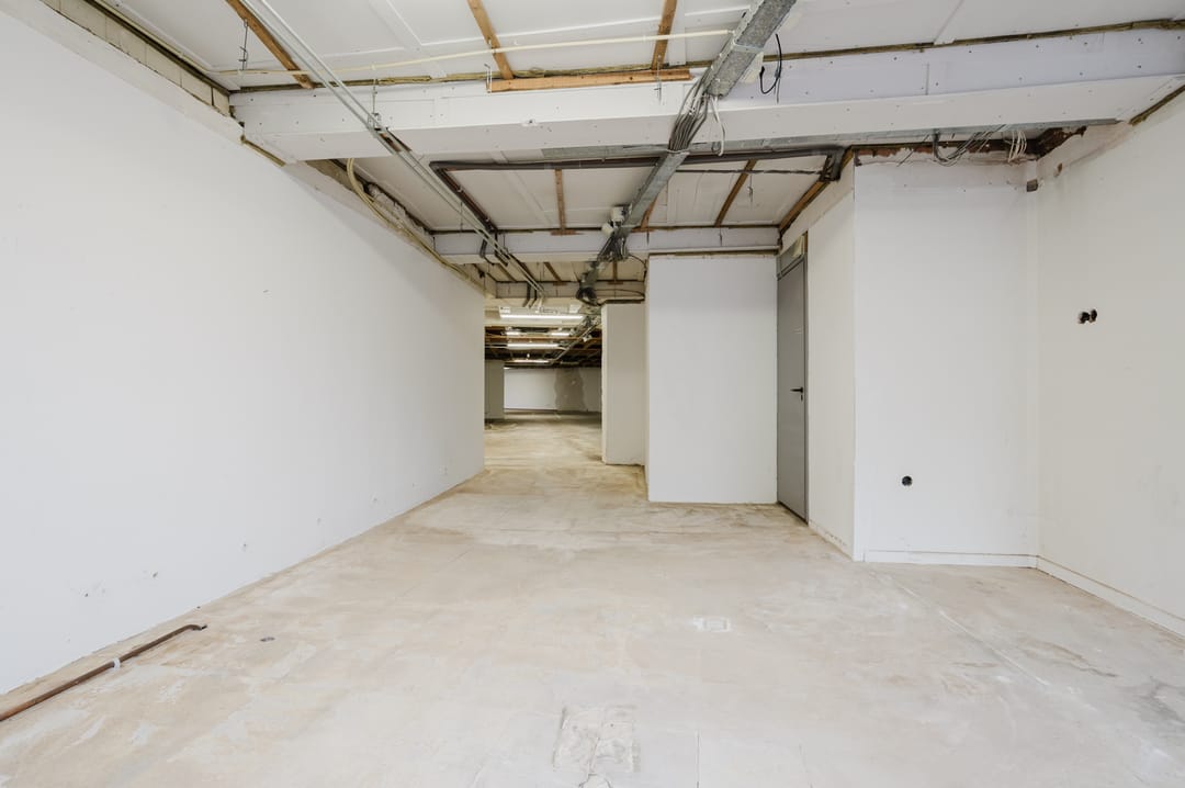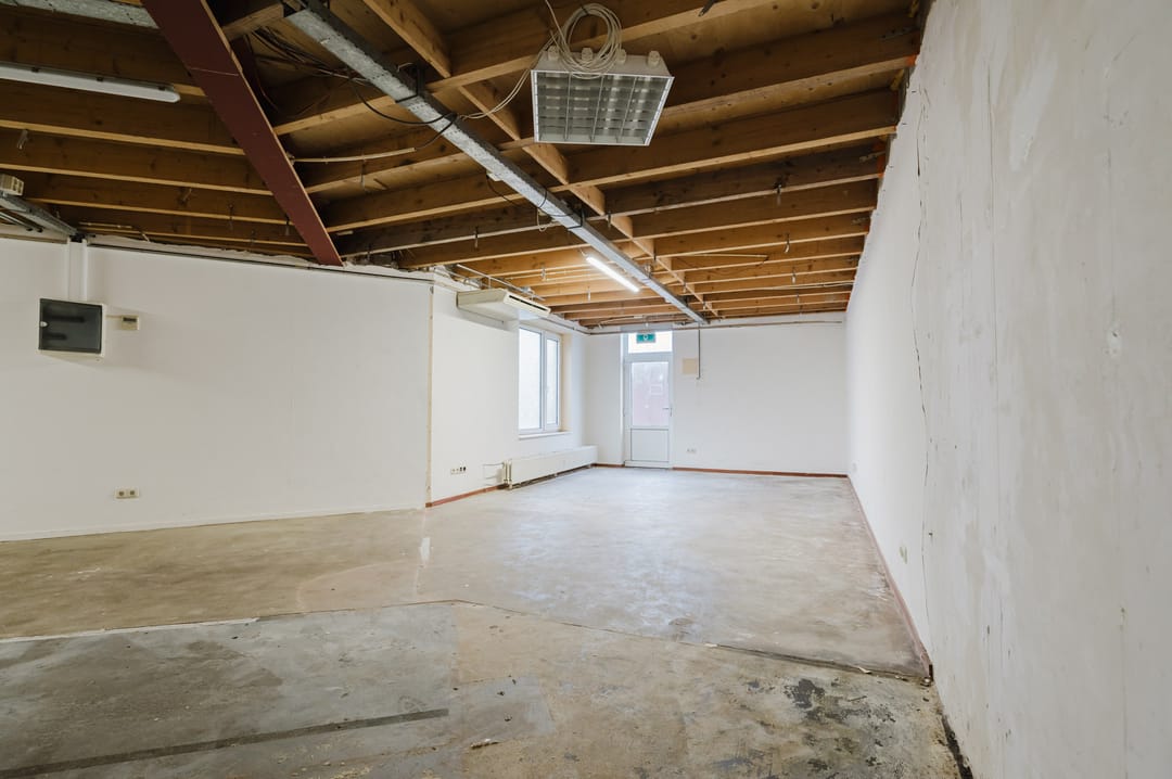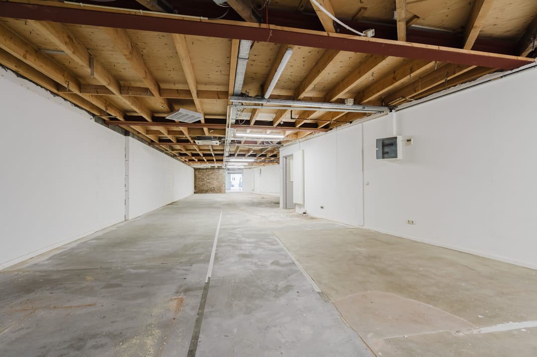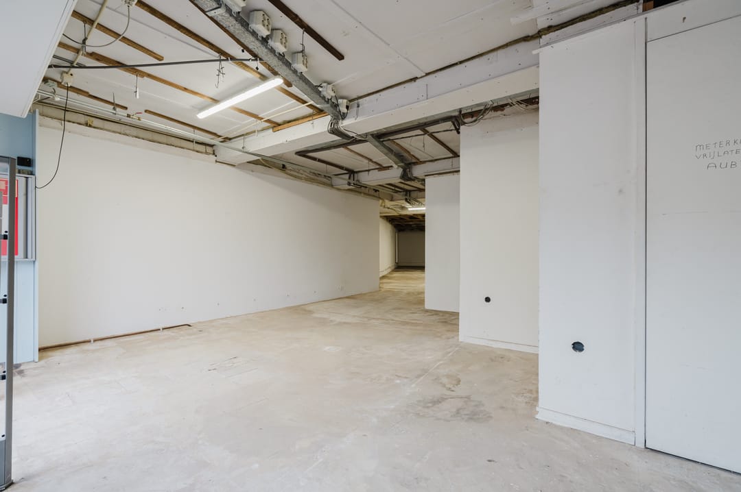 Via de schuifdeur is de zeer ruime commerciële ruimte te bereiken, met een frontbreedte van circa 6 meter en grote ramen voor een dubbele etalage. Verrassend is de diepte van de ruimte, die aan het einde nog de hoek om gaat. Verder zijn er een nooduitgang, twee opslagruimtes, een toiletruimte en een kantine/personeelsruimte.