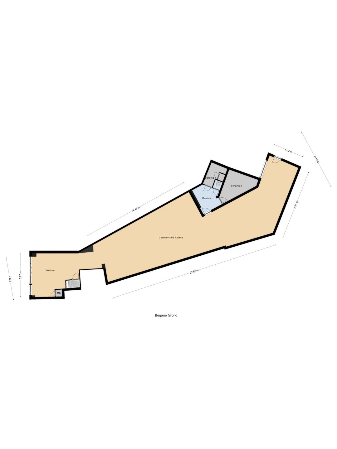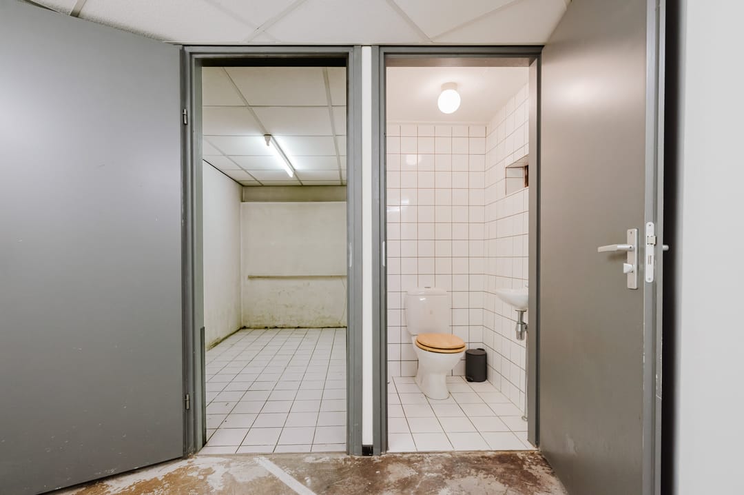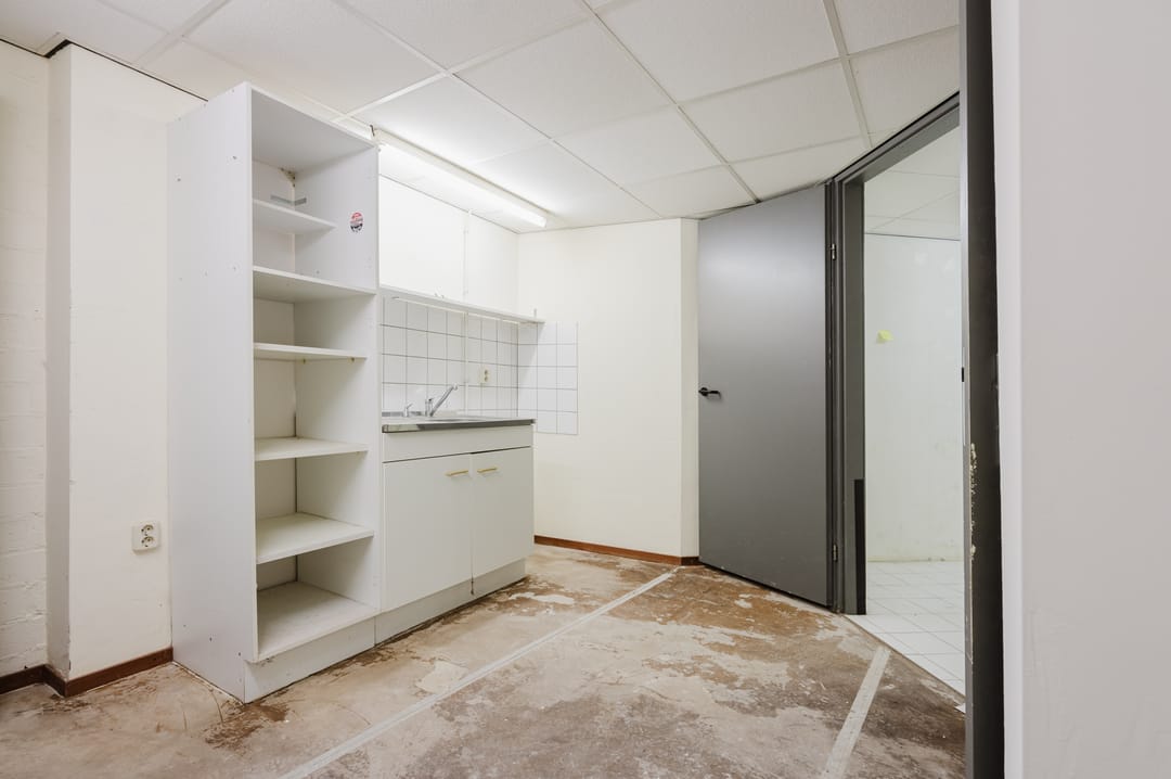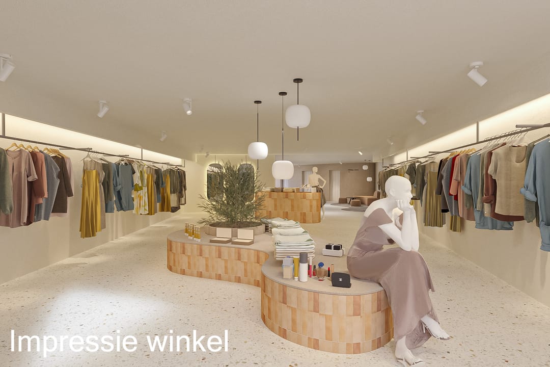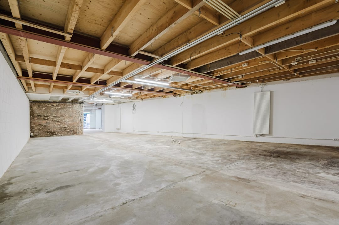 Via de schuifdeur is de zeer ruime commerciële ruimte te bereiken, met een frontbreedte van circa 6 meter en grote ramen voor een dubbele etalage. Verrassend is de diepte van de ruimte, die aan het einde nog de hoek om gaat. Verder zijn er een nooduitgang, twee opslagruimtes, een toiletruimte en een kantine/personeelsruimte.