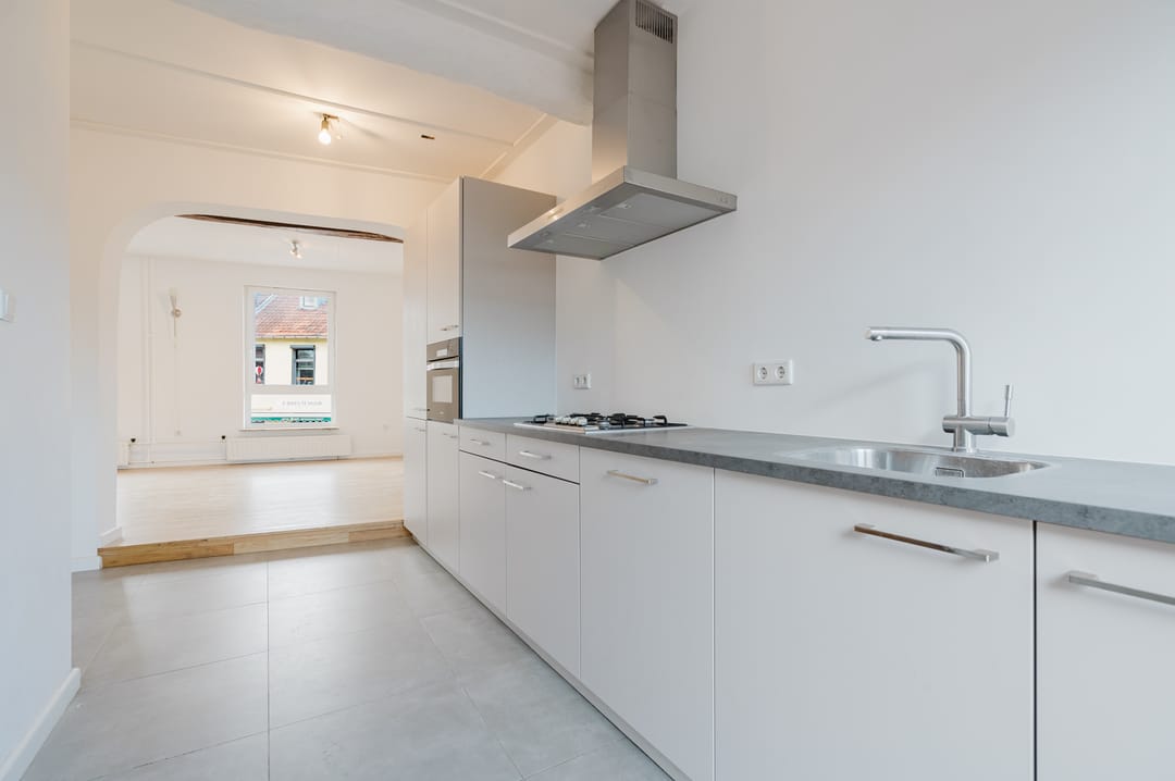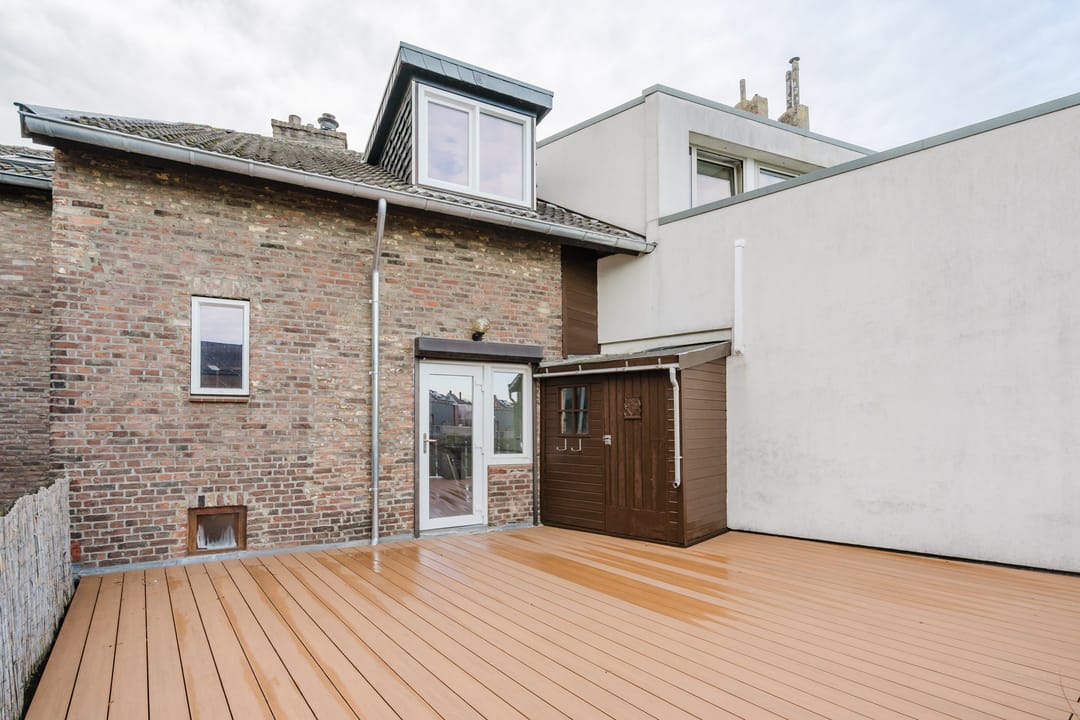 Moderne keuken van ca. 12 m² voorzien van een nieuwe keukeninstallatie met apparatuur. Vanuit de keuken is het riante dakterras (ca 30 m²) te bereiken, waar recent een nieuwe vlonder is gelegd. Hier bevindt zich ook een klein tuinhuis, ideaal voor het opslaan van je tuinset.