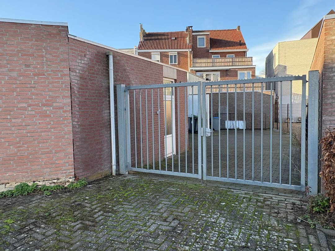 Via de onderdoorgang komt men op een binnenplaats met aan het eind daarvan de garage (ca. 18 m2) met kantelpoort. Deze is goed te gebruiken voor het stallen van fietsen, opslag van de commerciële ruimte of bijvoorbeeld een oldtimer die niet dagelijks gebruikt wordt.